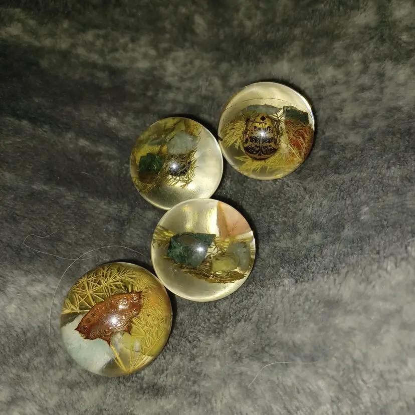 22 Mid Century Modern lucite marbles inside are bugs, beetles, rocks, plants Etc very cool kind of creepy please see all pictures as they are the best description all items from a smoke-free home with pets experienced shipper