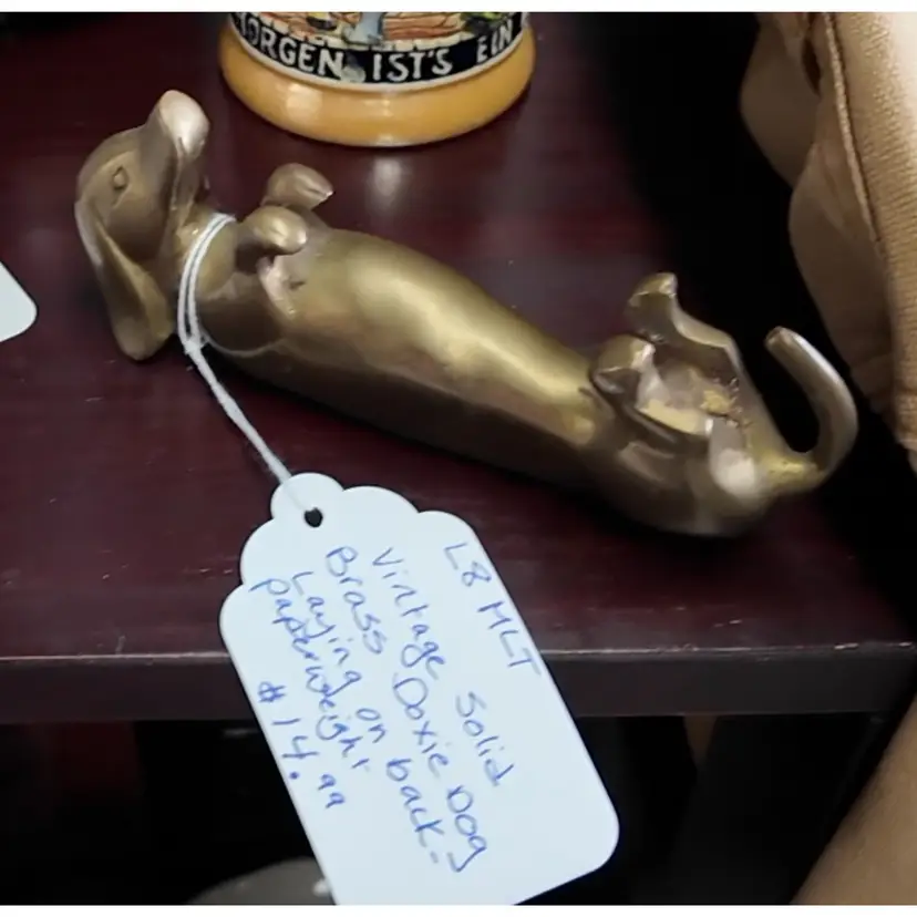 24 - Brass Dachshund Dog On Back Figurine