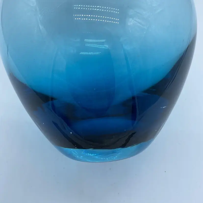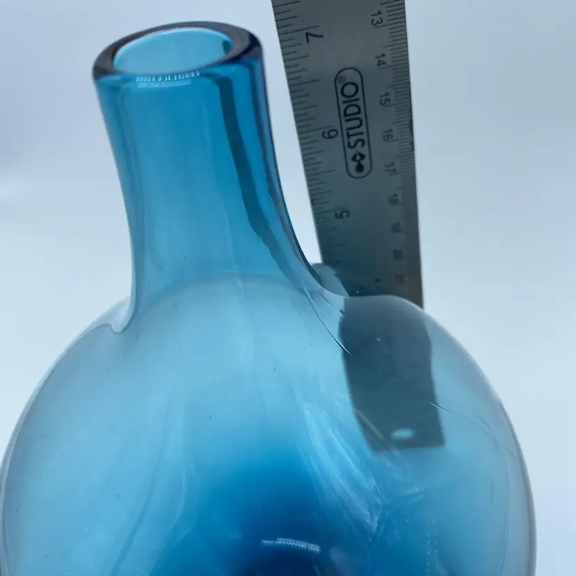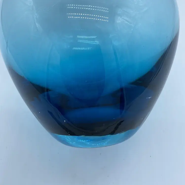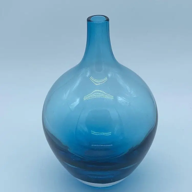 Vintage Hand Blown Amber Glass Salong Vase Johanna Jelinek Swedish Modern for IKEA This vase was designed by Johanna Jelinek and was made various jewel tones, the Salong vases came in a variety of shapes- this measures 5 inches wide by 8 inches tall. The teal color ranges from a deep ocean color to a light transparent teal at the top. 1990s