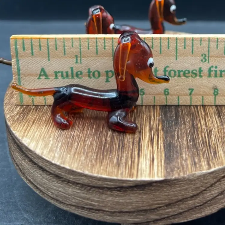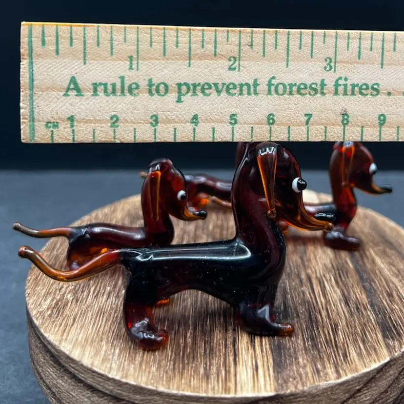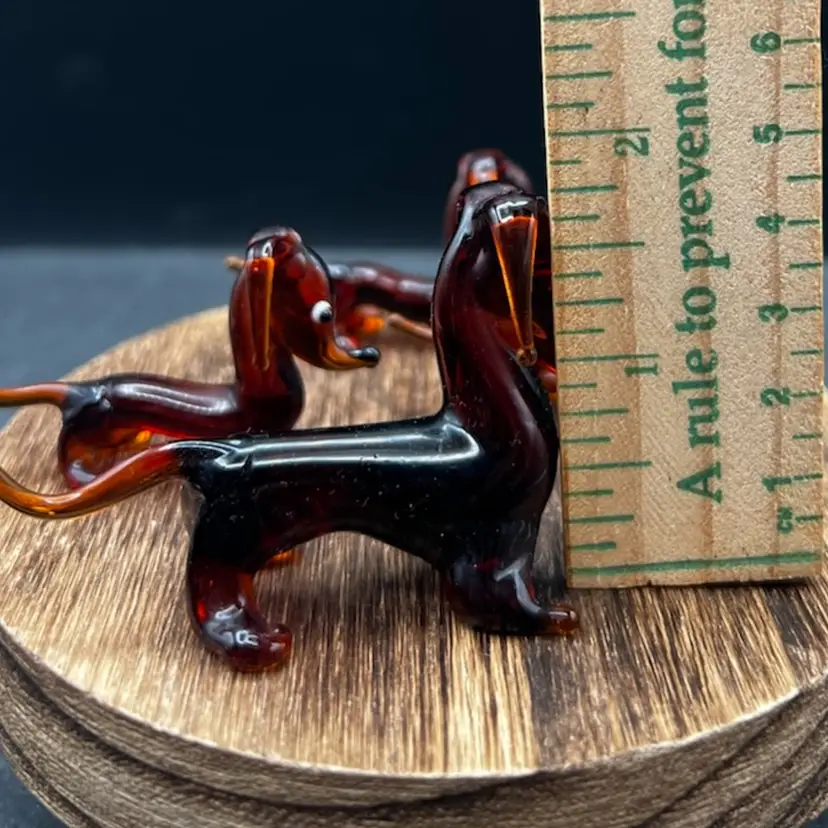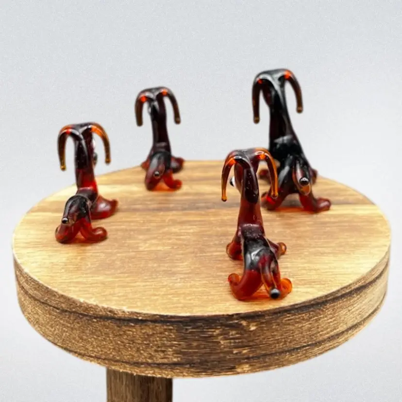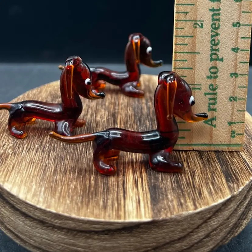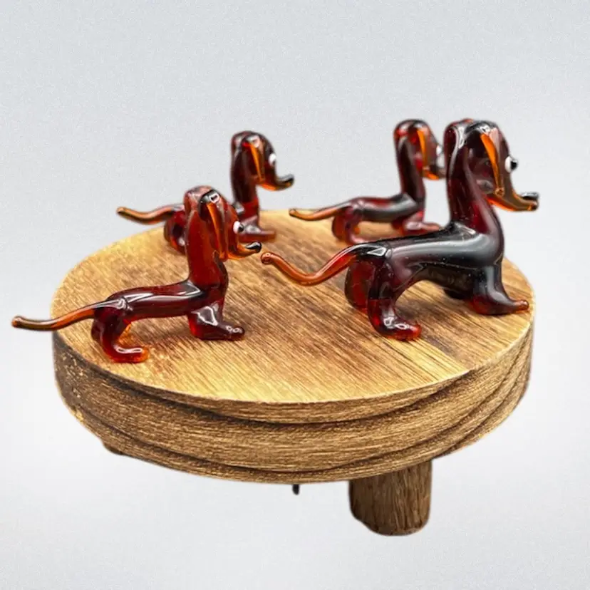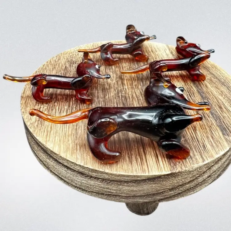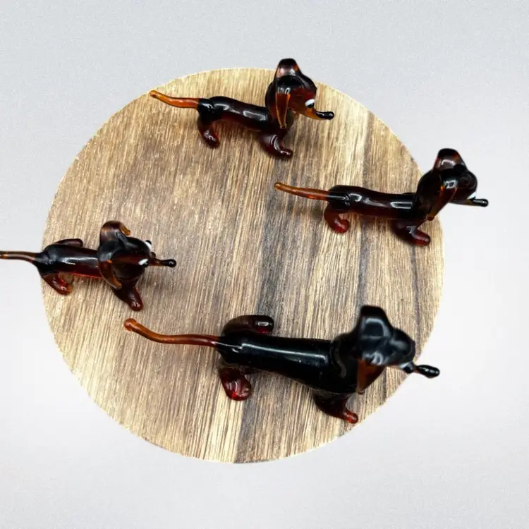 Blown Glass Miniature Dachshund/Weenie Dog Family. Brown With Big Eyes. Set Of Four Mother And Three Puppies All are in excellent condition Mother stands 1 3/4” tall x 3” long Each of the pups stands around 1 1/4” tall x 2 1/2” long