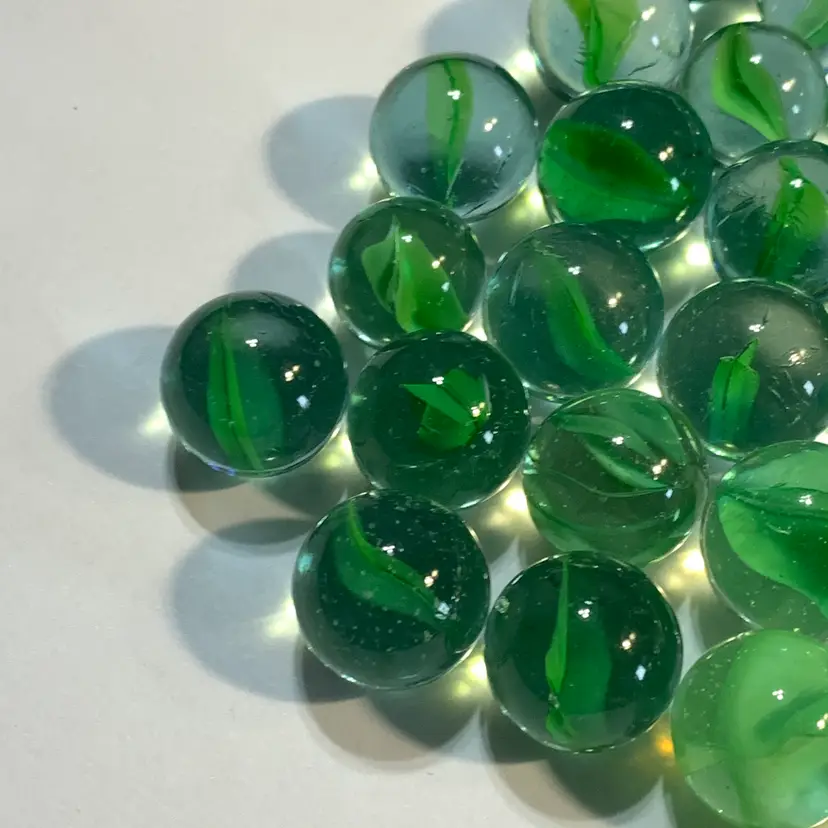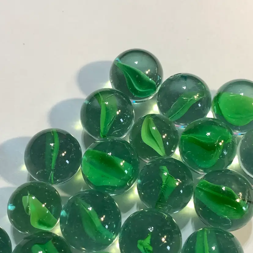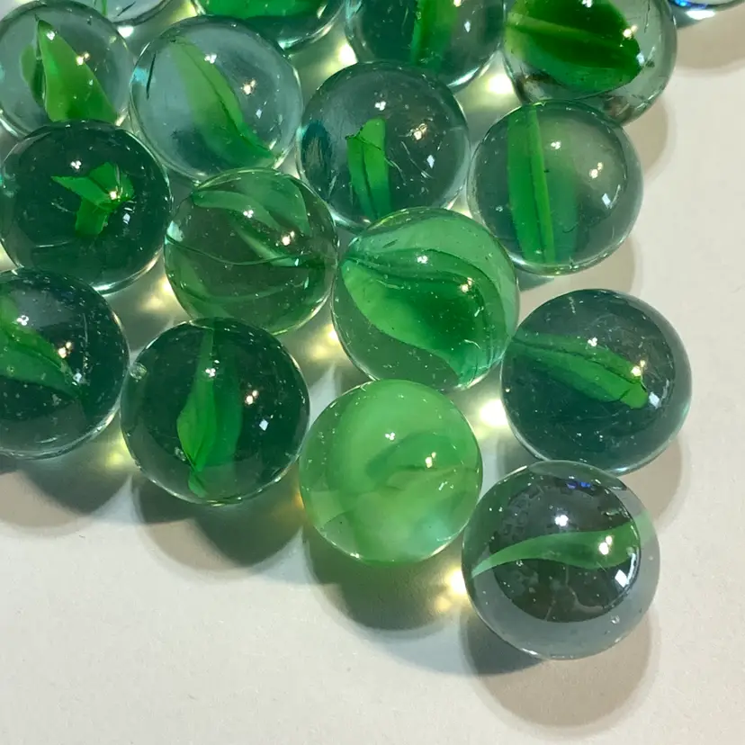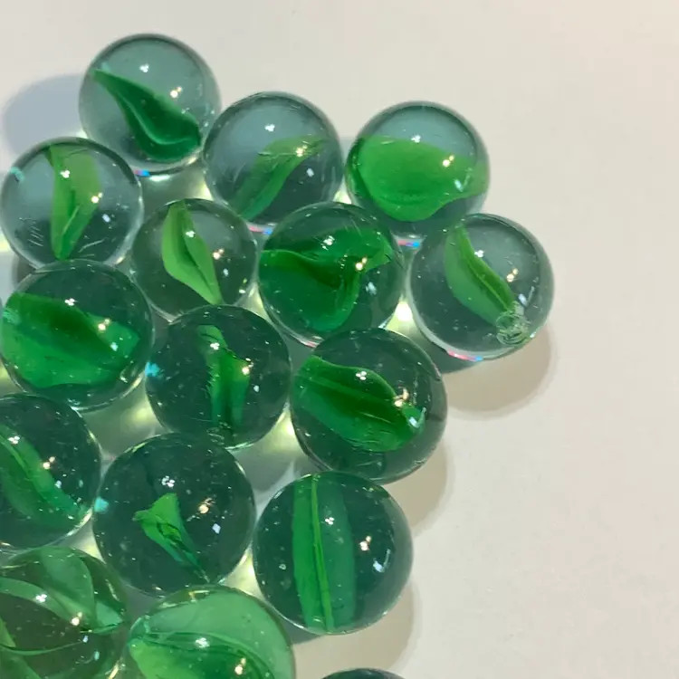 24-Clear w/Green Swirl Glass Marbles 5/8"