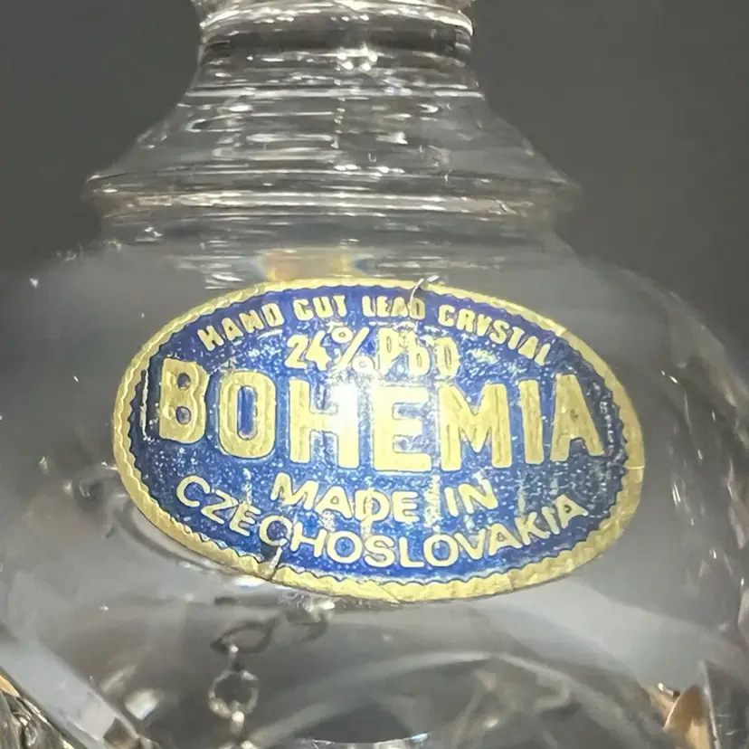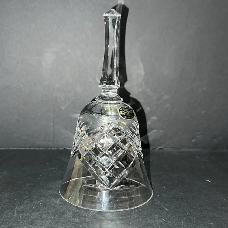 24% Hand Cut Lead Crystal Bohemia Clear Bell Czechoslovakia ~6.25” x 3.5” diameter