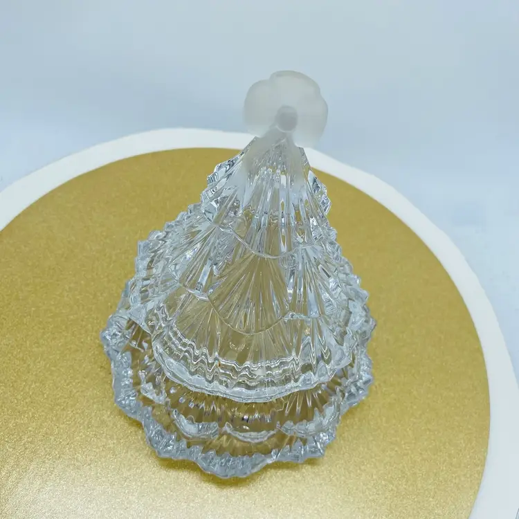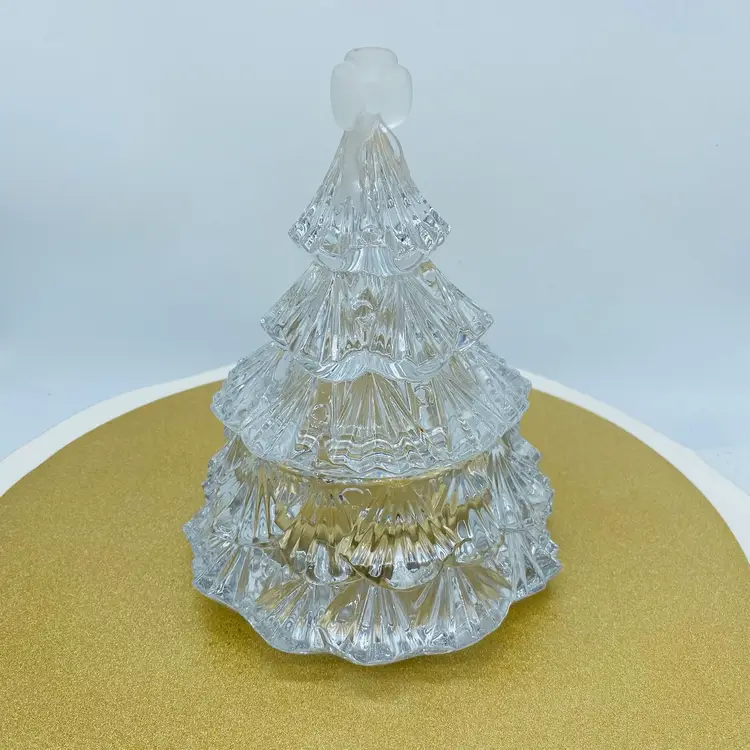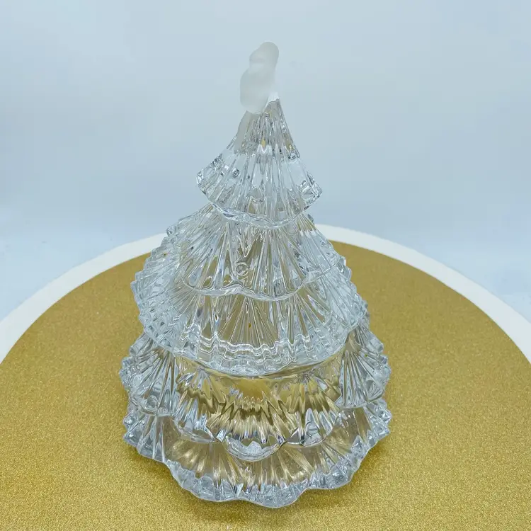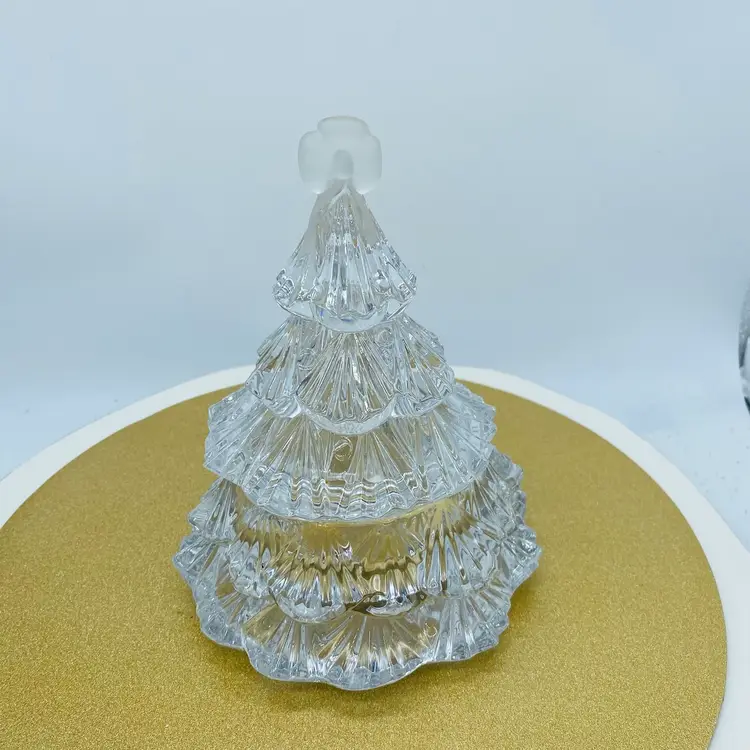 Very sparkly tree with topper of satin glass. 2 piece Candy Dish.