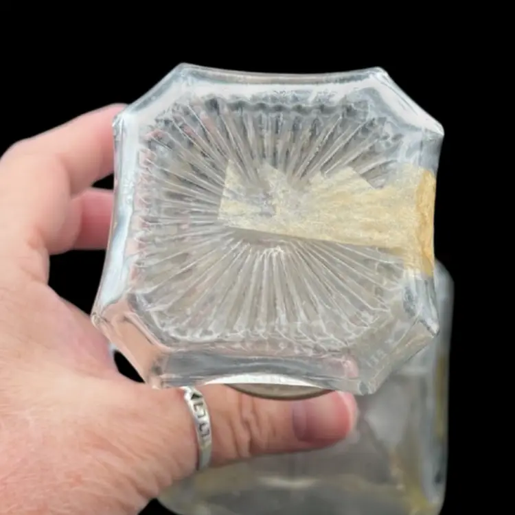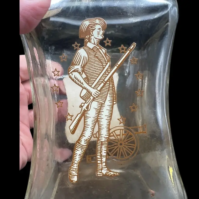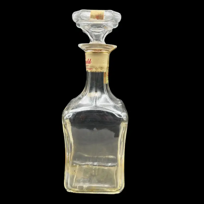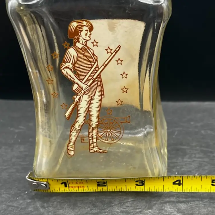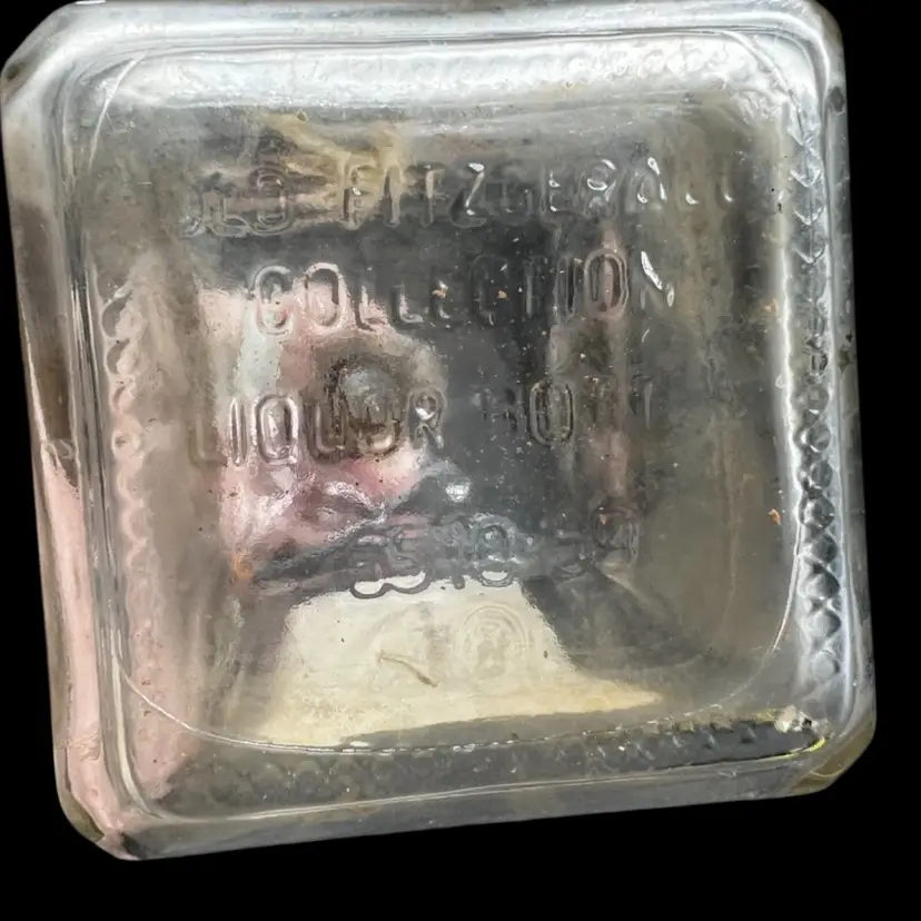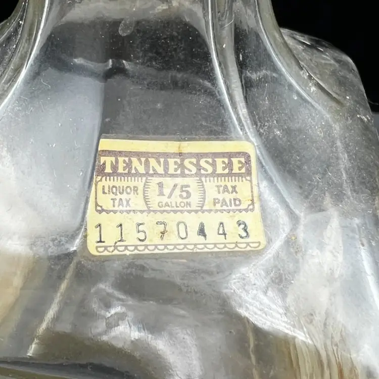 Vintage Old Fitzgerald Collection Colonial Decanter Liquor Bottle 100 Proof Straight Bourbon Whiskey. Bottled In Bond KY 1963 Sold 1969. Several Original Tags Still Attached. Bottled In Bond is in excellent condition, no chips or cracks. Cork around lid is dry and tearing. Date and tax labels still attached. Bottle does have residue inside. I did not want to risk losing the tags on the sides by cleaning. With stopper it stands 10” tall x 3” x3”
