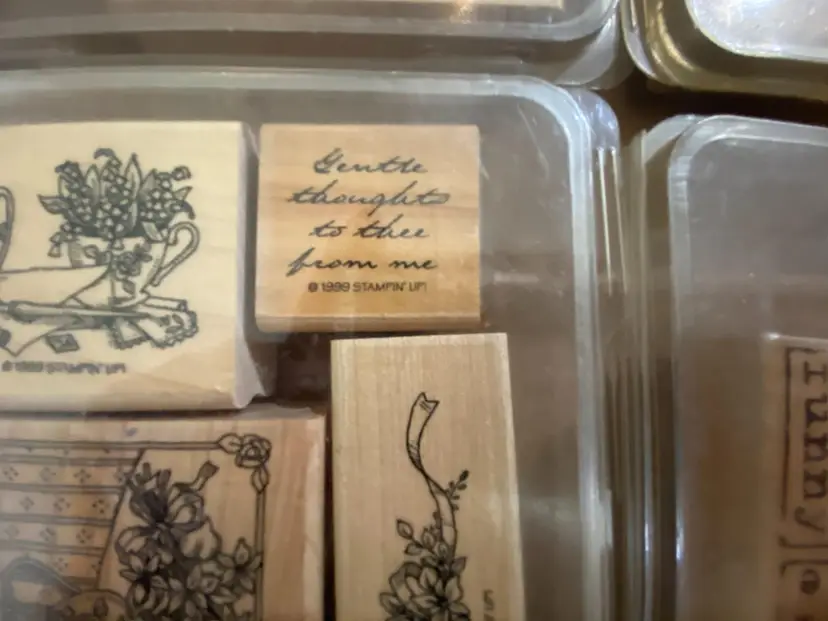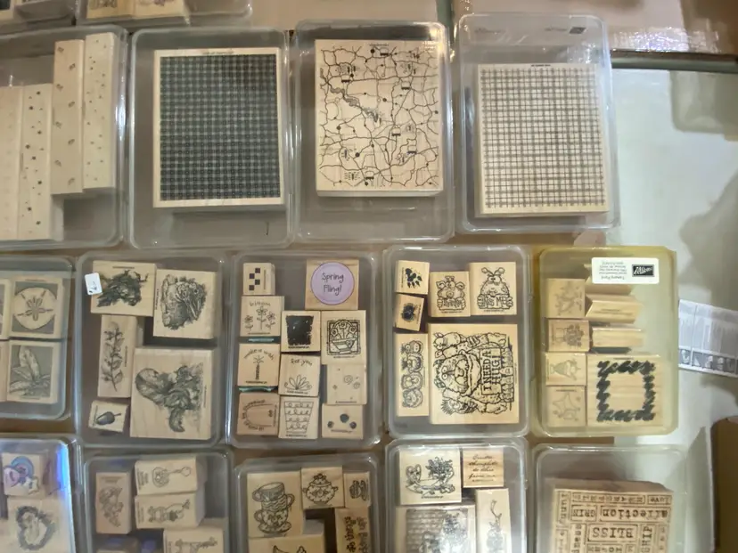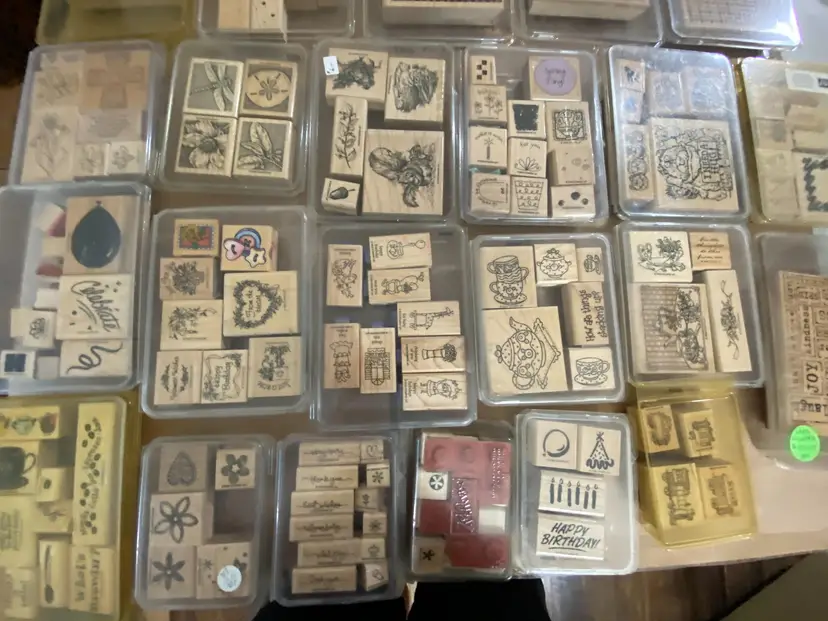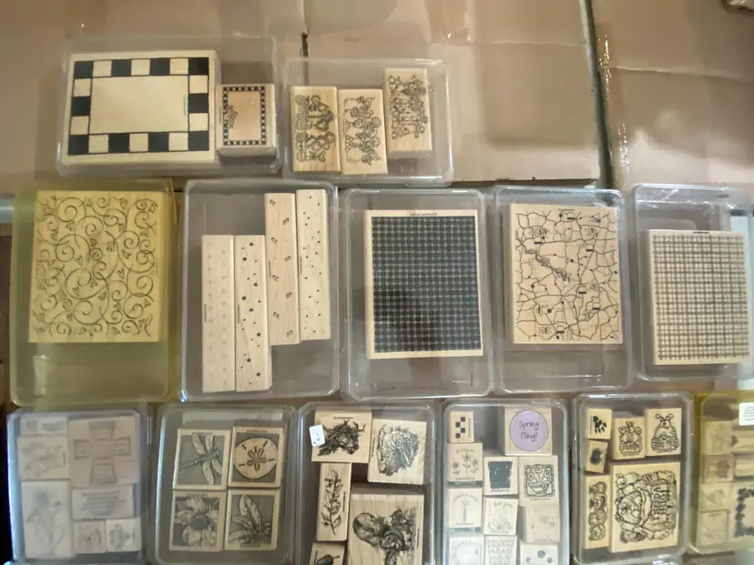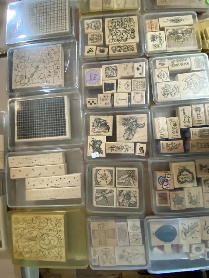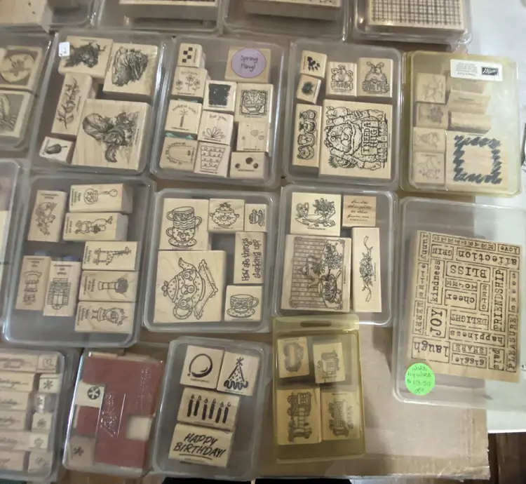 25 Stampin Up rubber stamp kits / packs each one has multi stamps in it. Wood handles mix of themes some have been used have some ink remaining on them I have numerous lots of these up if interested in more then one I can check on combined shipping. Thank you for looking. 18# 13x13x9