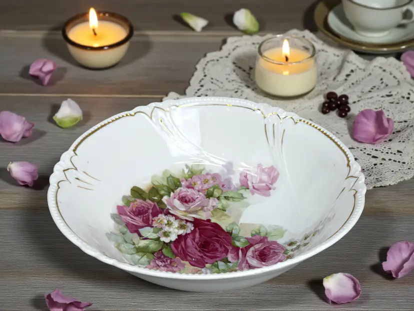 Add this graceful floral bowl to your vintage décor collection or gift it to someone who loves timeless, romantic style.