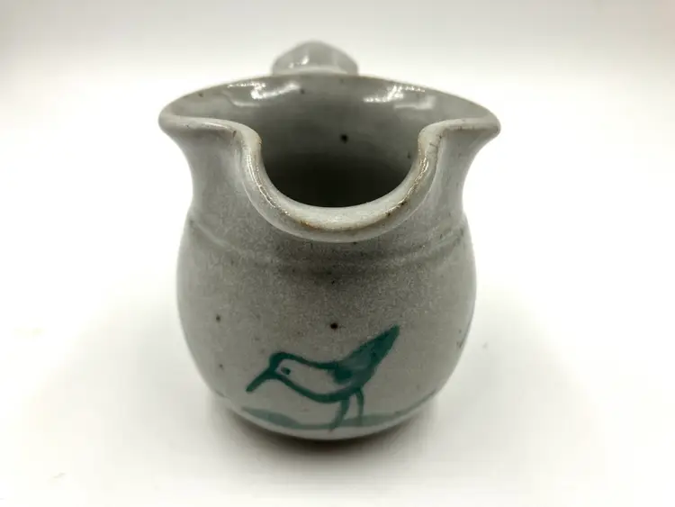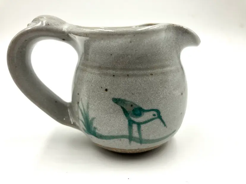 Adorable creamer with sandpipers on the back and a scallop shell on the handle. Excellent condition. Measures 4” x 2.75” x 2.75”.
