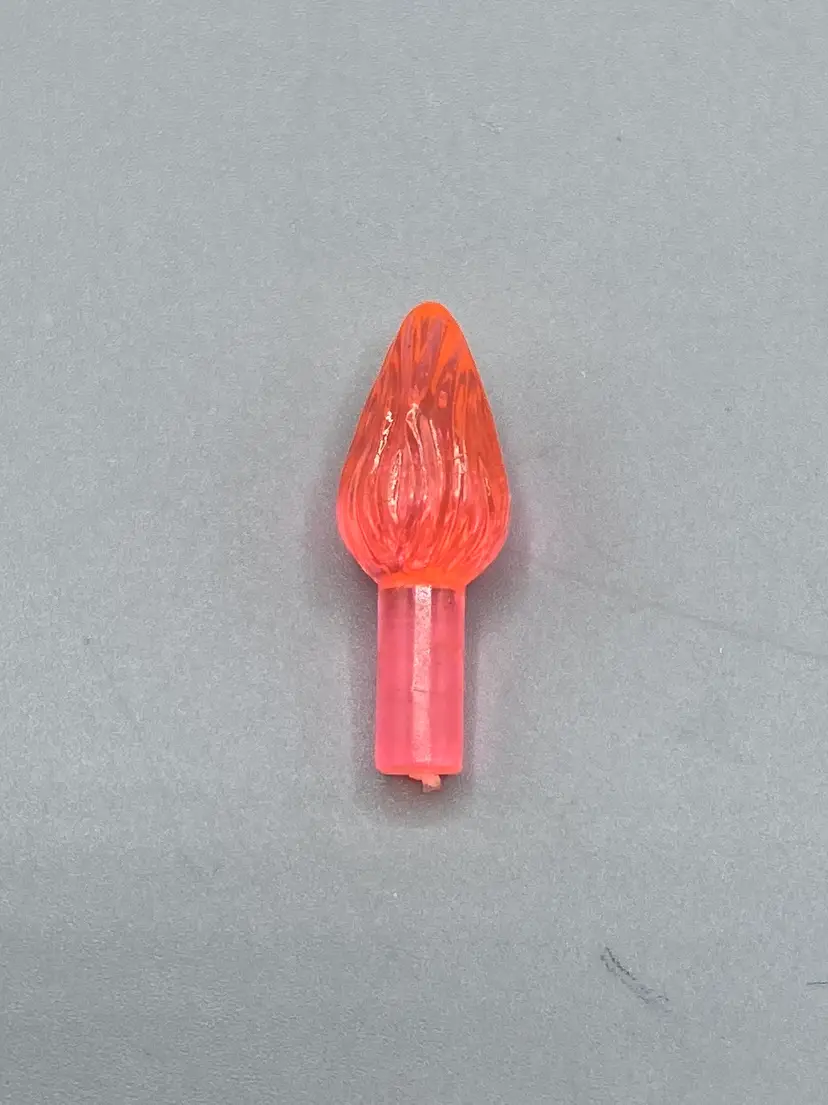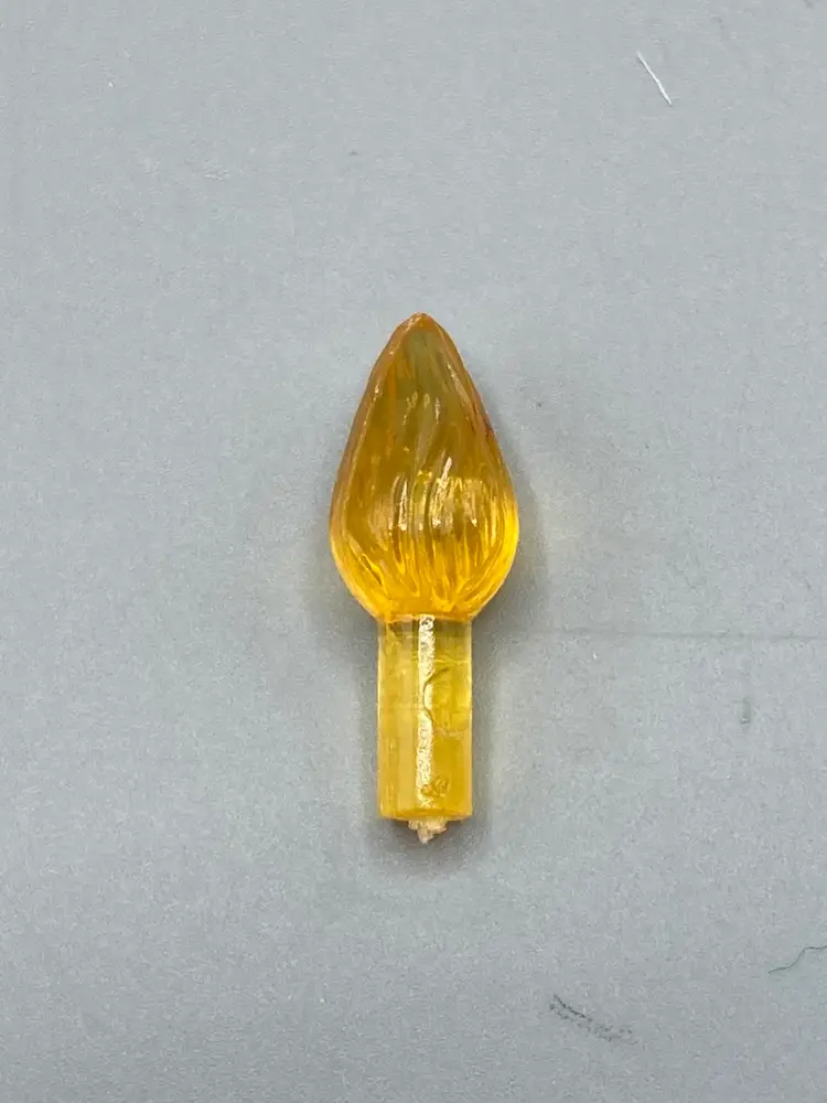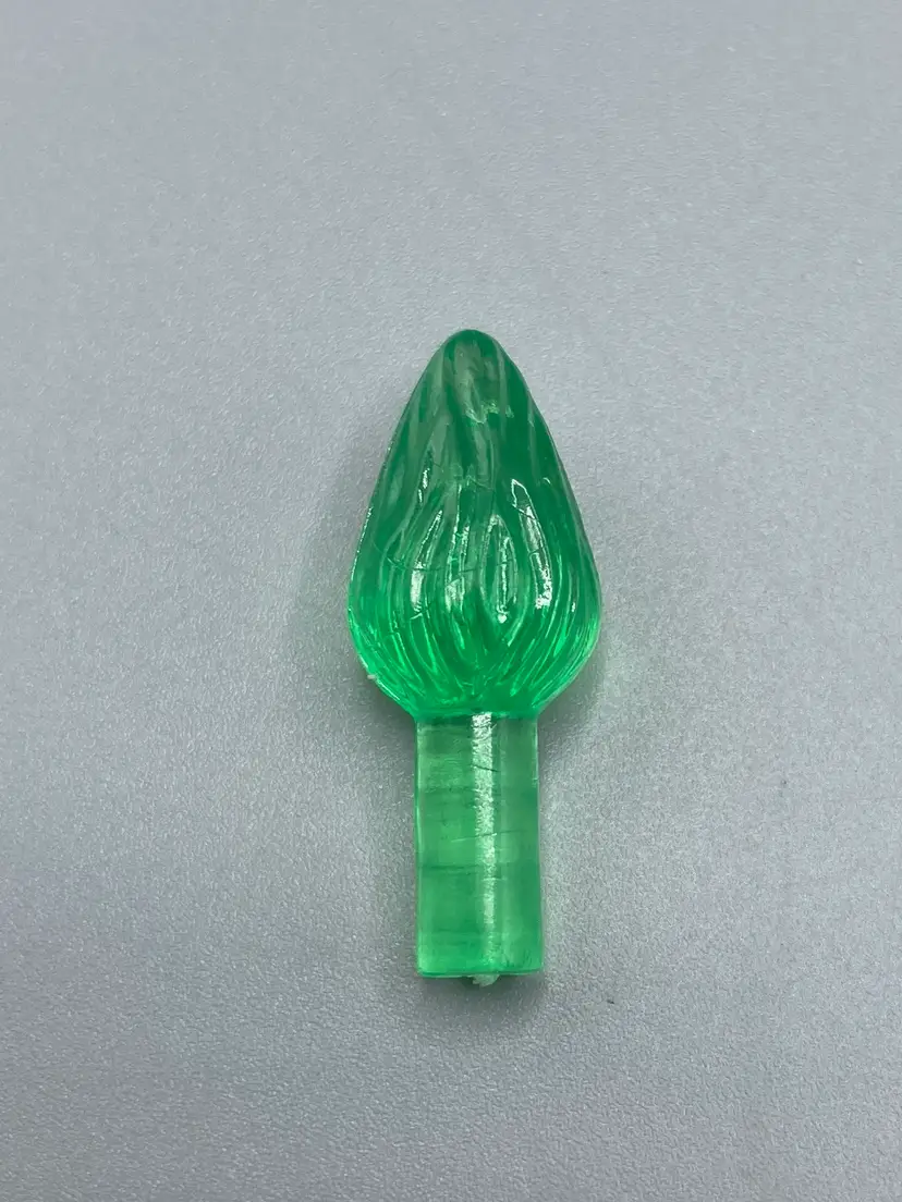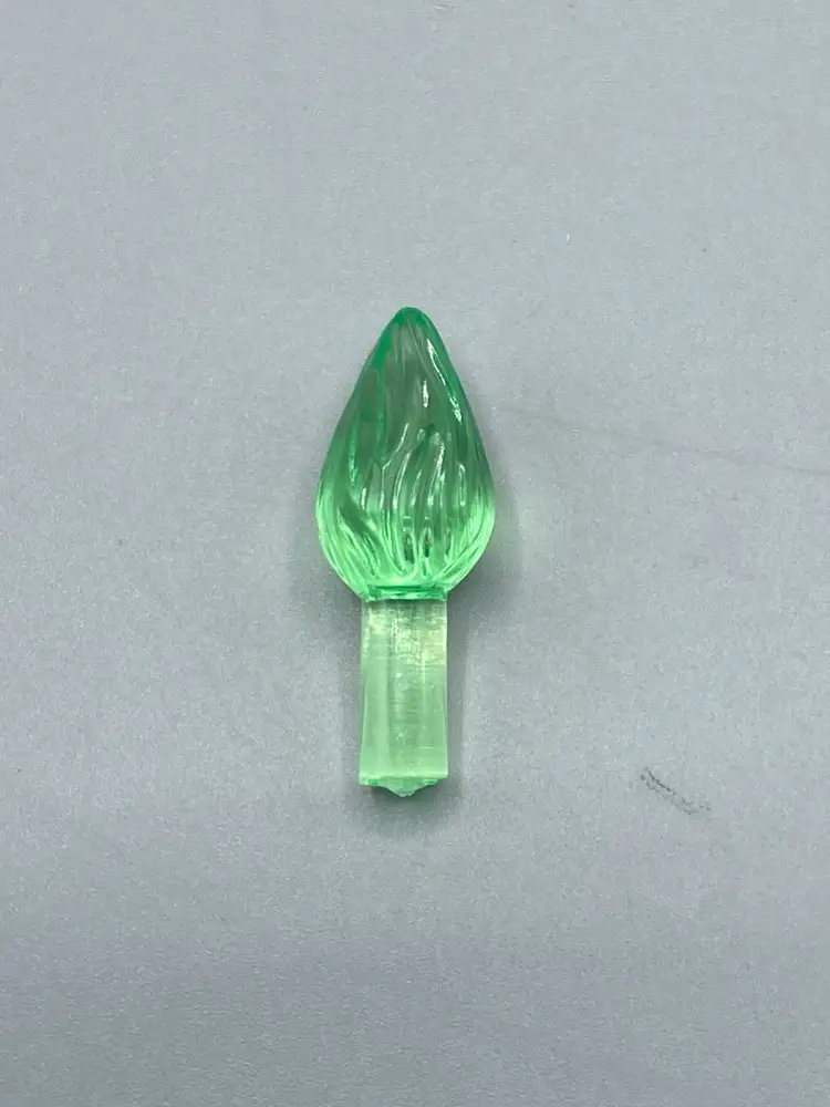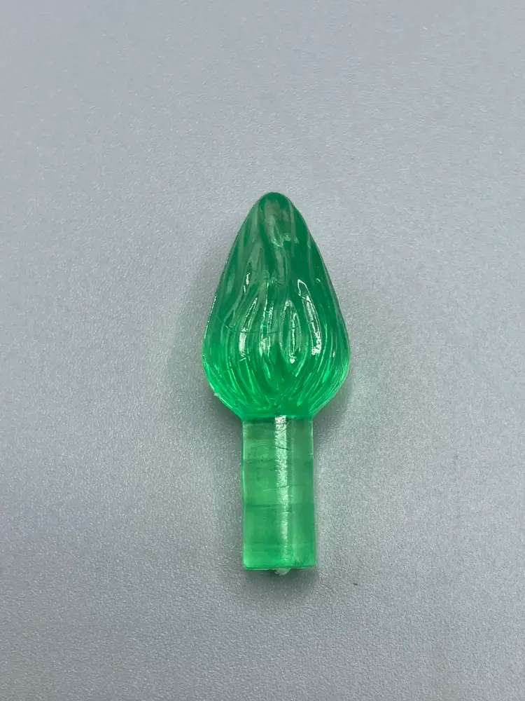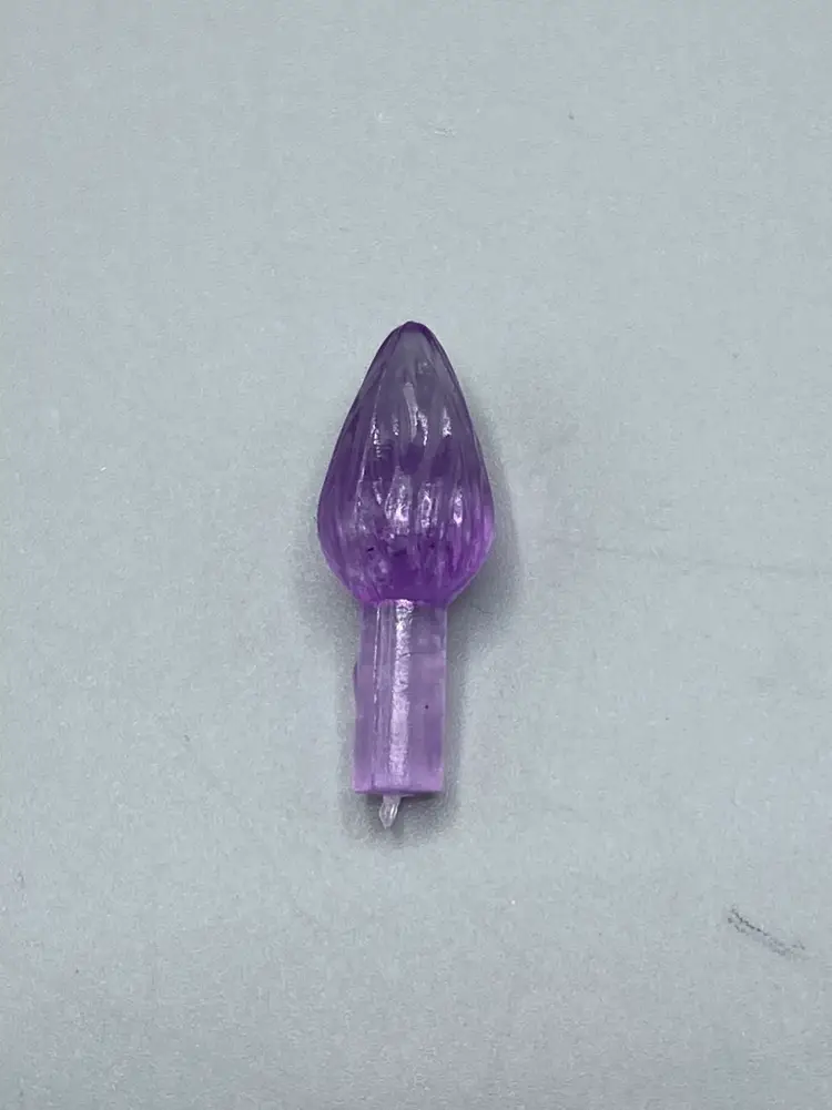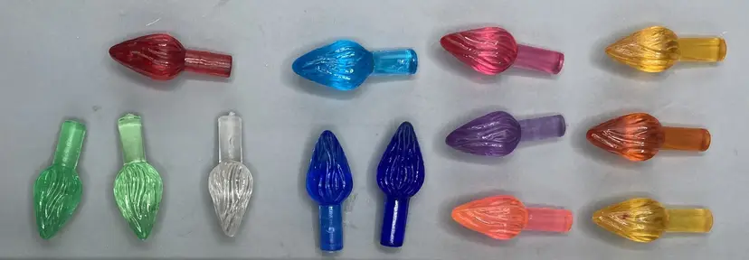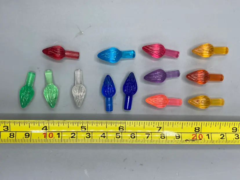 These bulb pegs are in good condition. They will come in a pack of 25 of assorted colors. See the first couple picture for a sampling of the colors you may get in your pack. They measure approximately 1" in length total. The bulb end is 1/4" at the widest point. The peg end diameter is approximately 0.20".