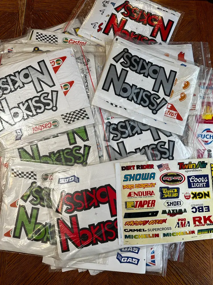 A variety of sticker and decals that can be used for one’s motorcycle or model, airplane or other miniature. Came from an estate of someone who had model airplanes, motorcycles, and other items onto which decals could be stuck.