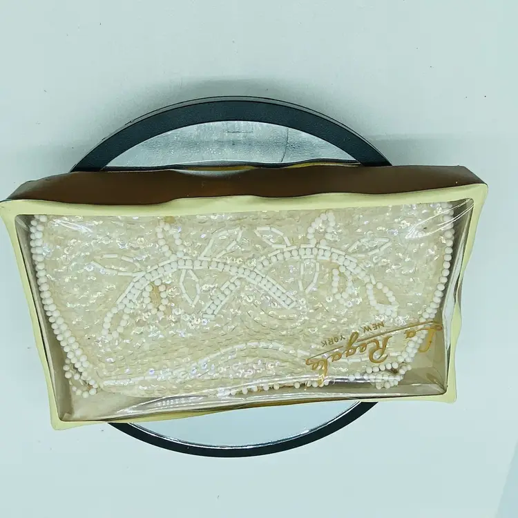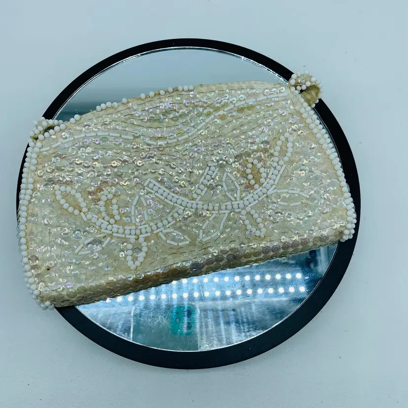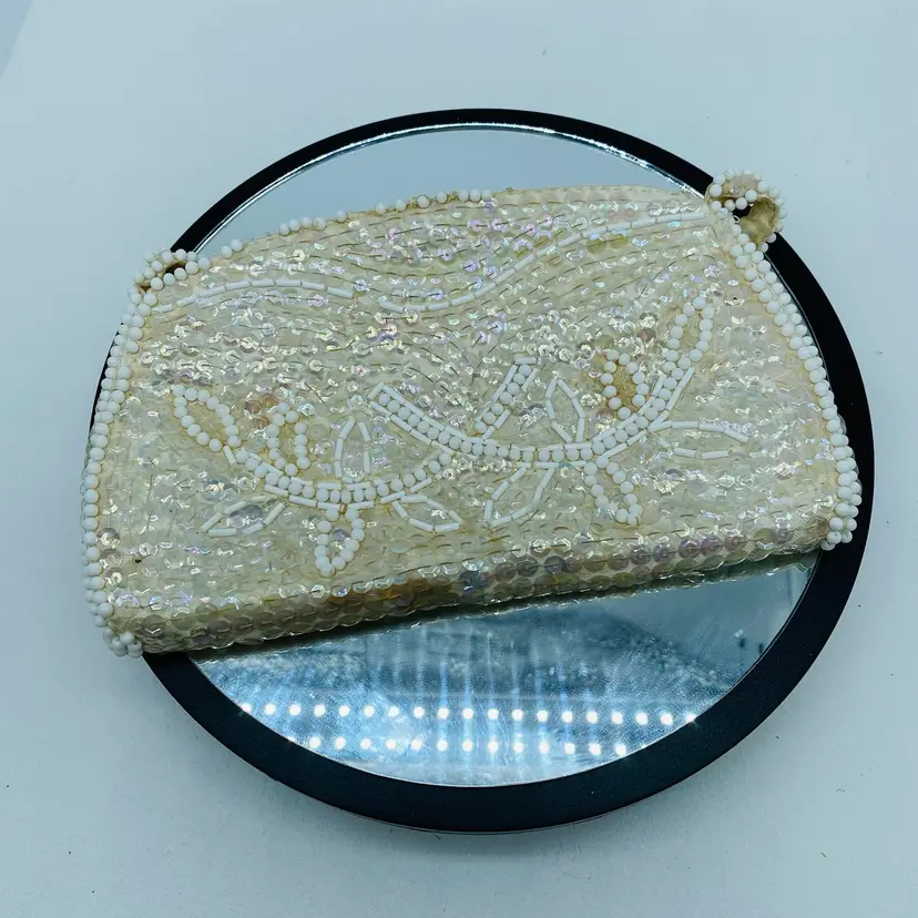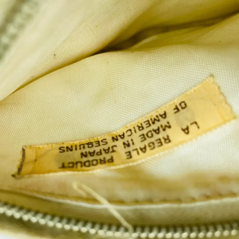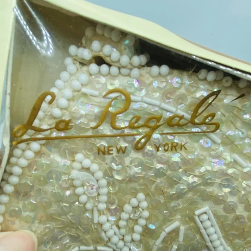 Antique with some flaws - in original Box - Label reads La Regale Product Made in Japan of USA Sequins 8 x 5 inches Some beads missing but reasonable condition for age.