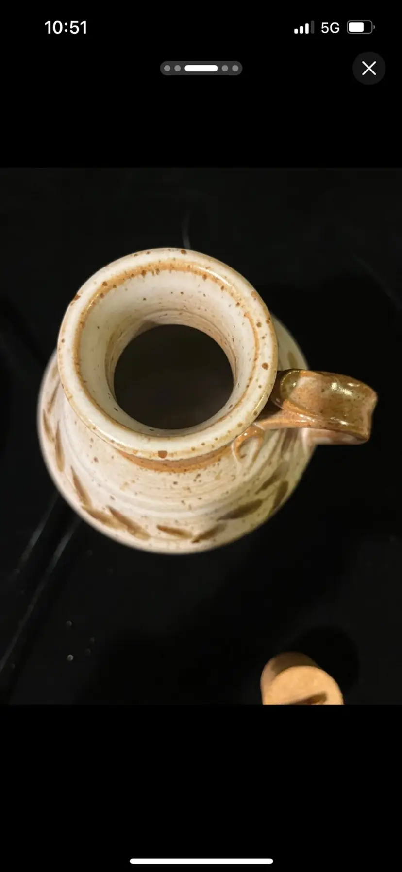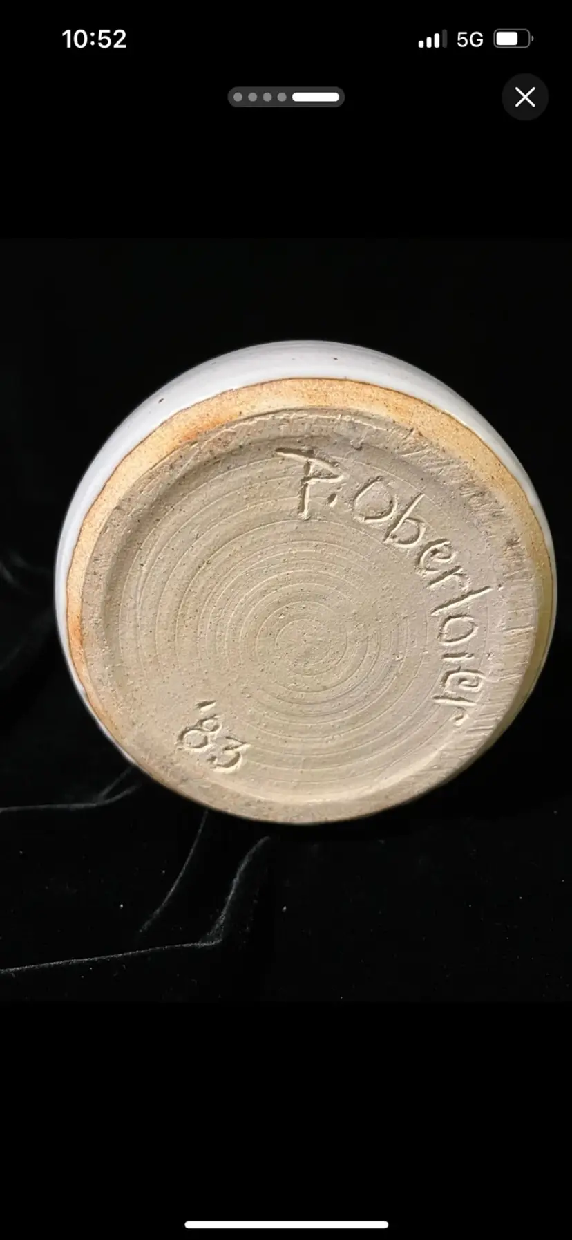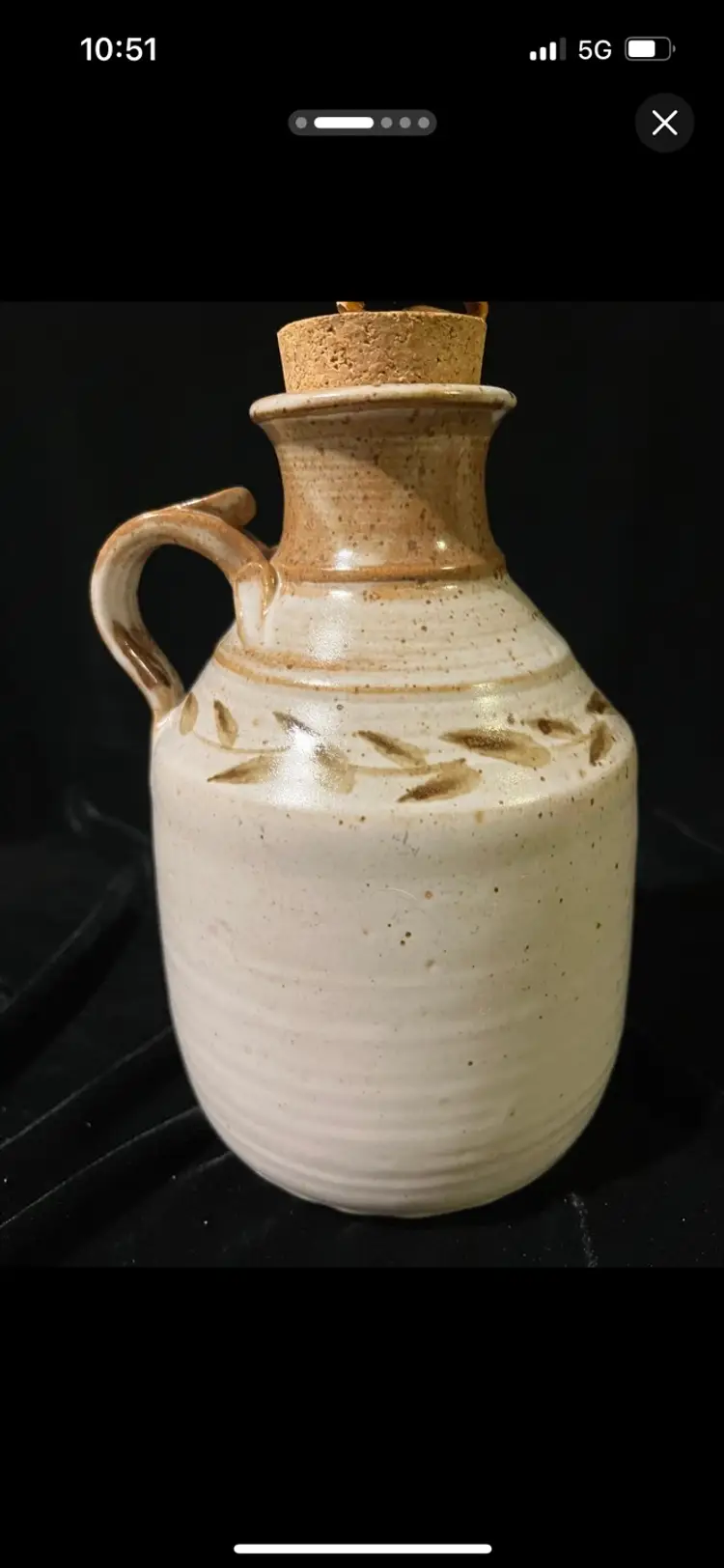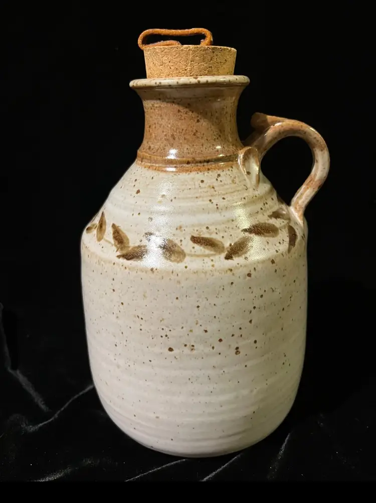Up for grabs is this beautiful signed hand thrown pottery jug beautifully hand crafted and designed by Michigan artist Patricia Oberloier in 1983. Measuring approximately 8” from base to the top of the unique cork closure, it has no chips or cracks and maintains its original beautiful finish. It’s beautiful neutral color would be a beautiful addition to any home decor or collection. It would also be a functional piece for daily use and would garner the notice of family and friends.