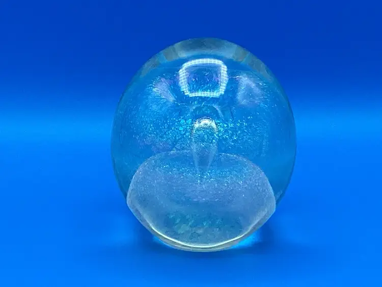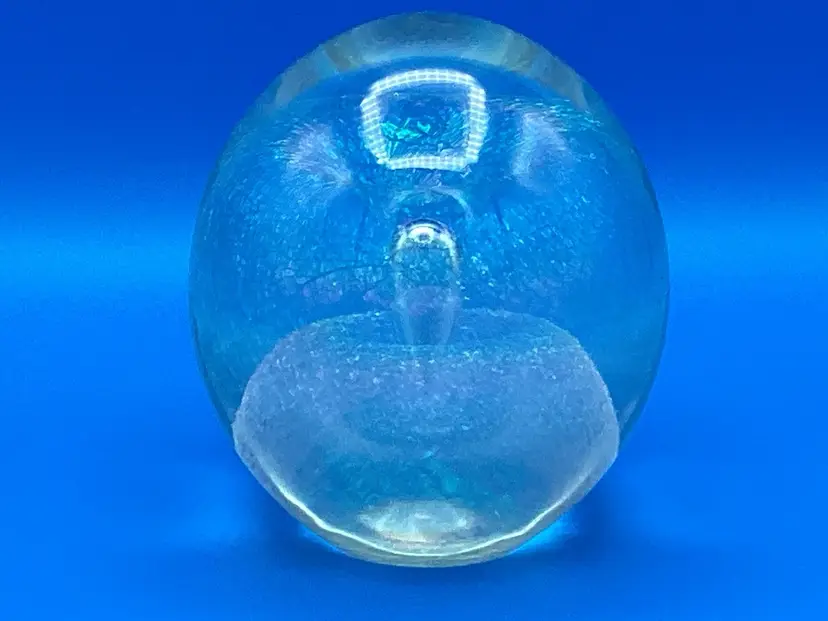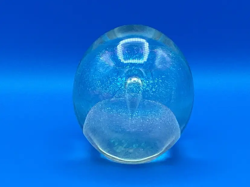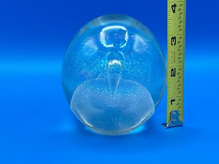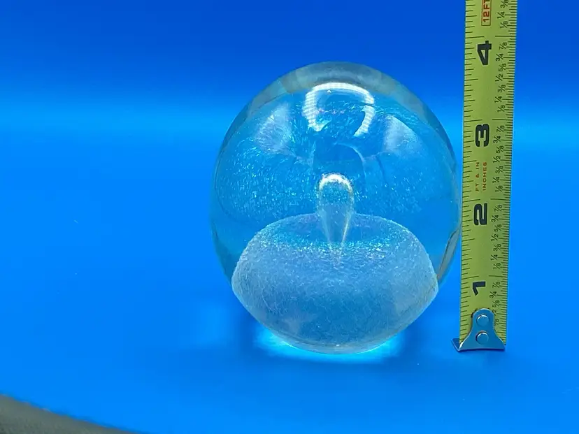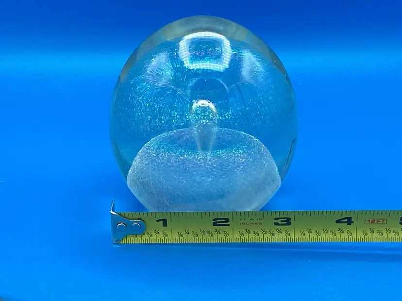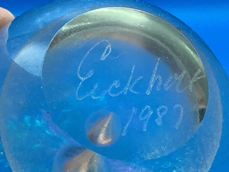 This is a vintage Eickholt paperweight measuring 3 3/4 inches tall and approximately 3 1/2 inches in diameter. There are a few small scratches and scuffs as shown in the pictures. The paper weight is dated 1987.