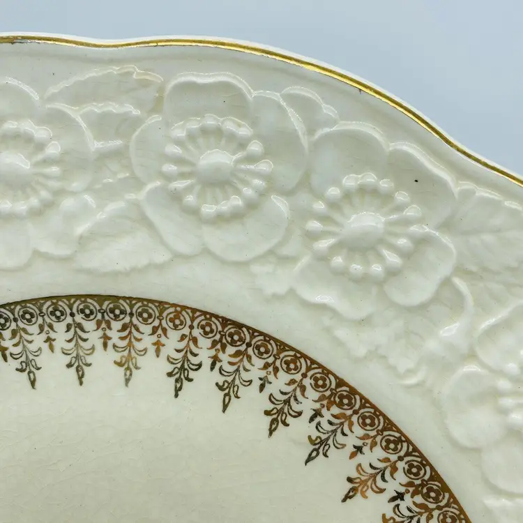 Border is rich embossed design of the English Rose. Gold embellishments in good condition.