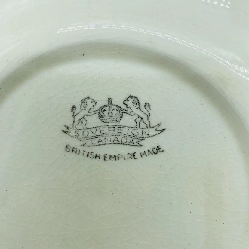 The plate is made by Sovereign of Canada, with the archaic "British Empire Made" printed on base beneath the company logo of two rampant lions and a crown.