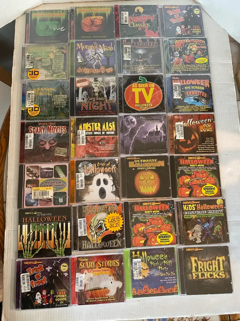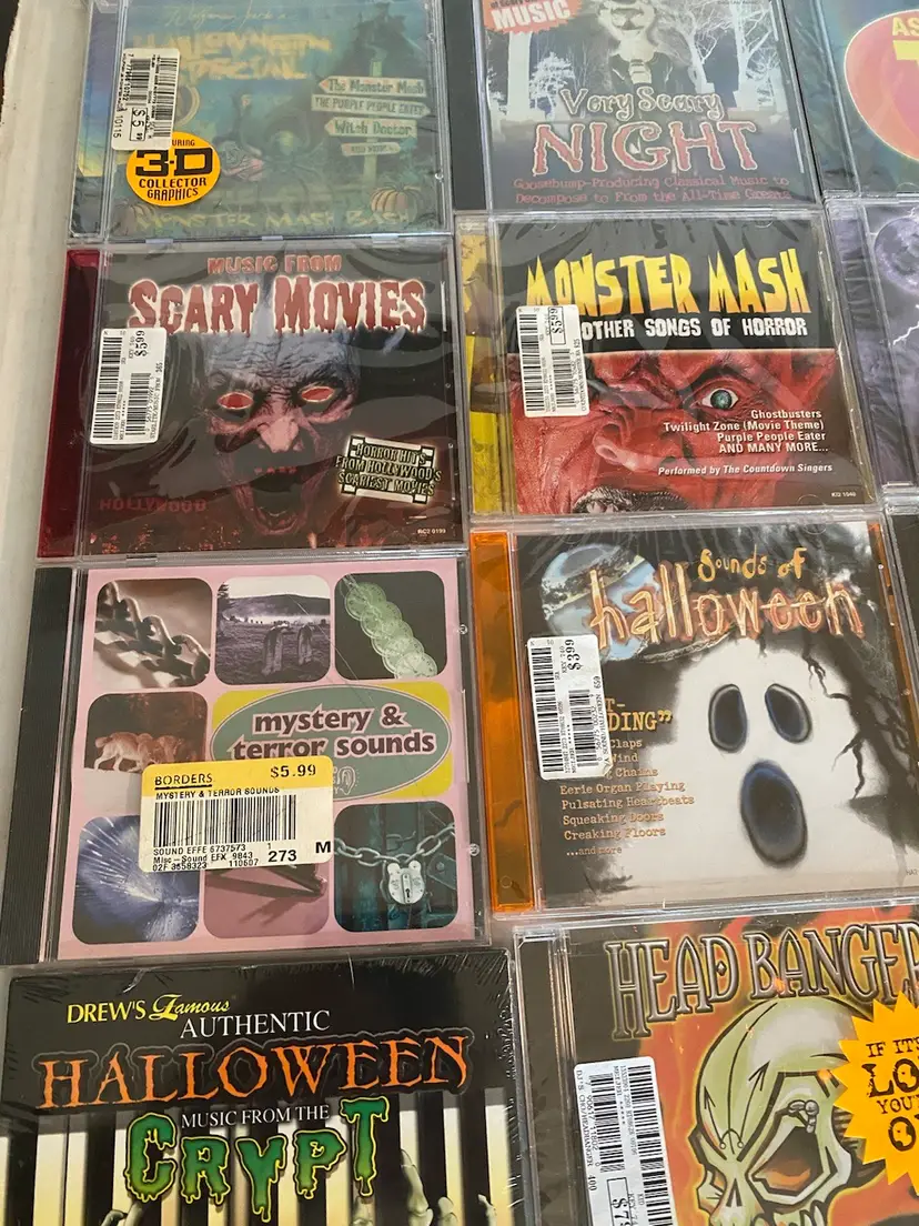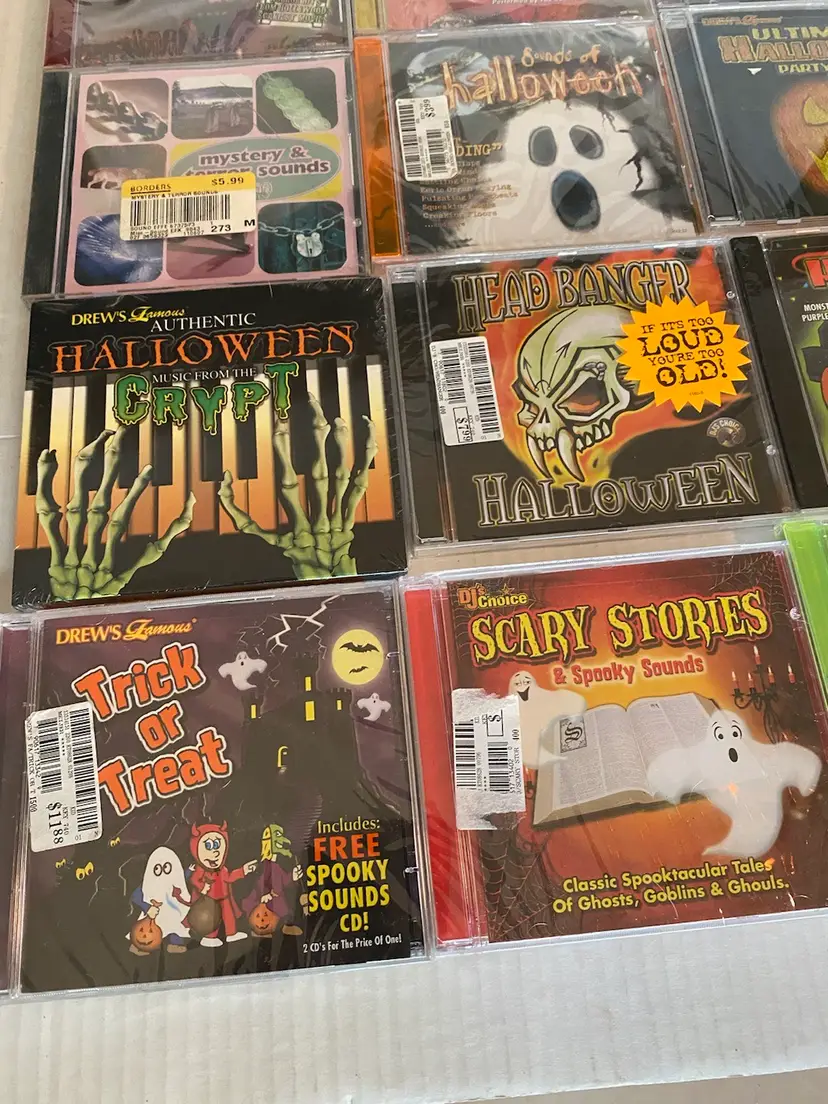 Scary collection of Halloween music CDs All types of music and sound effects Perfect for the season. all factory sealed Please see pictures for titles and as part of the description. Thank you for looking