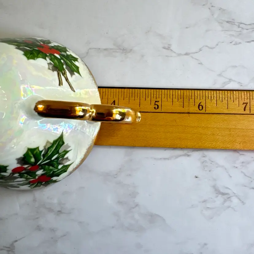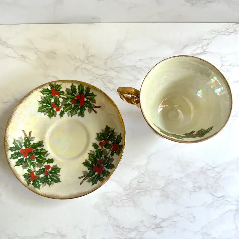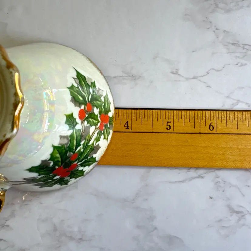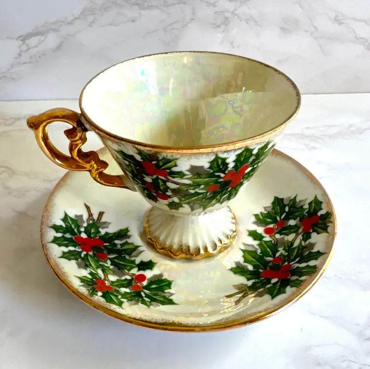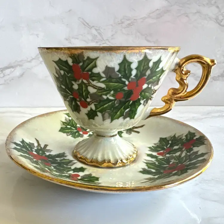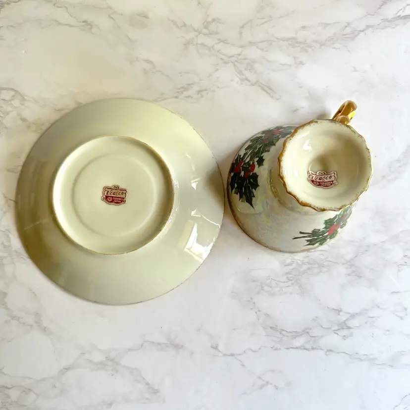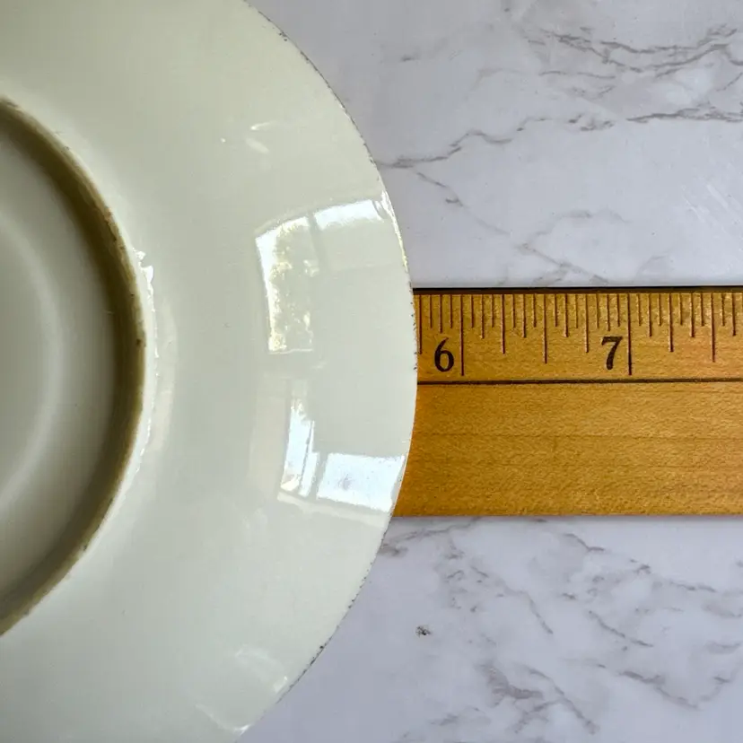 Excellent vintage condition. Has original stickers on bottom. Minimal to no paint wear. Saucer is about 5-3/4”dia. Cup measures about 3-5/8”dia x 4-1/2”w at handle