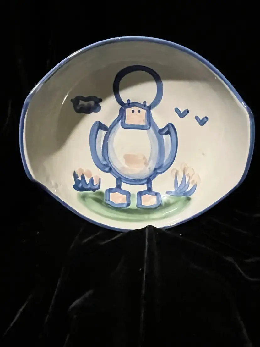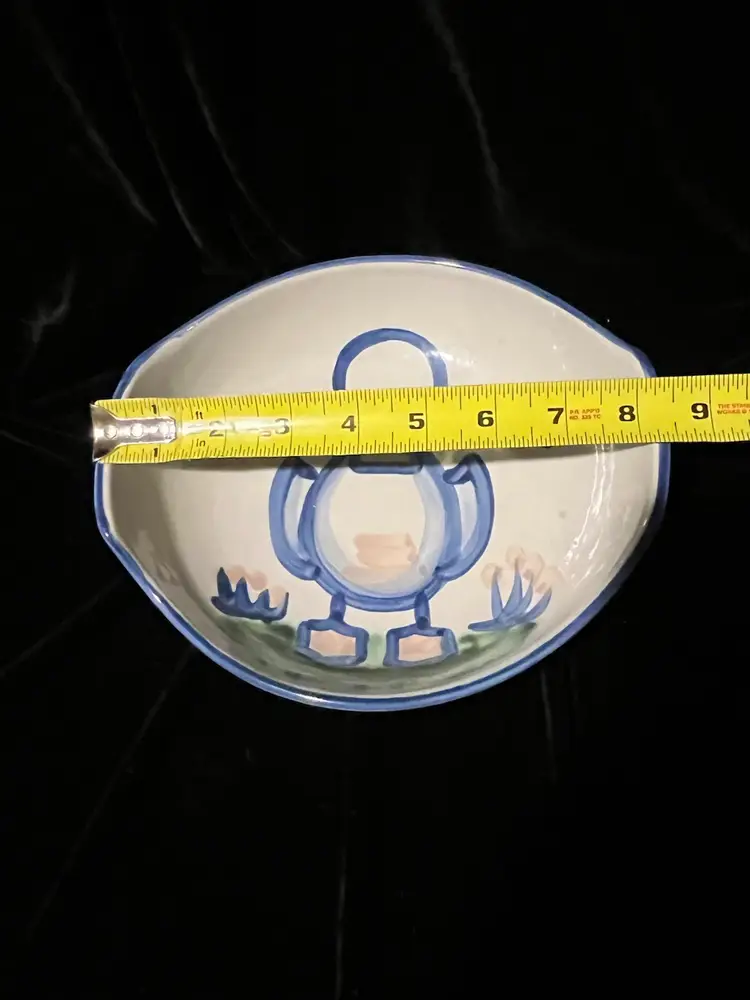 Sweet double handle duck bowl which aren’t that common. Approximately 8 1/4” in diameter. No chips or cracks.