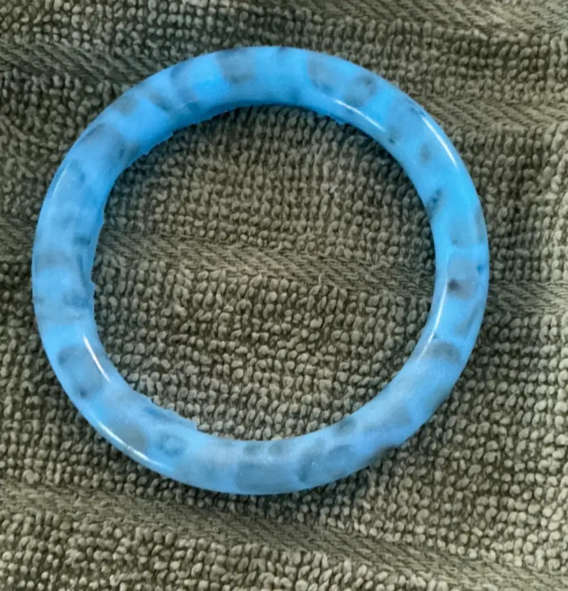 Real natual stone chip suspended within light blue colored resin with blue mica powder and blue glow in the dark powder. 7.5"