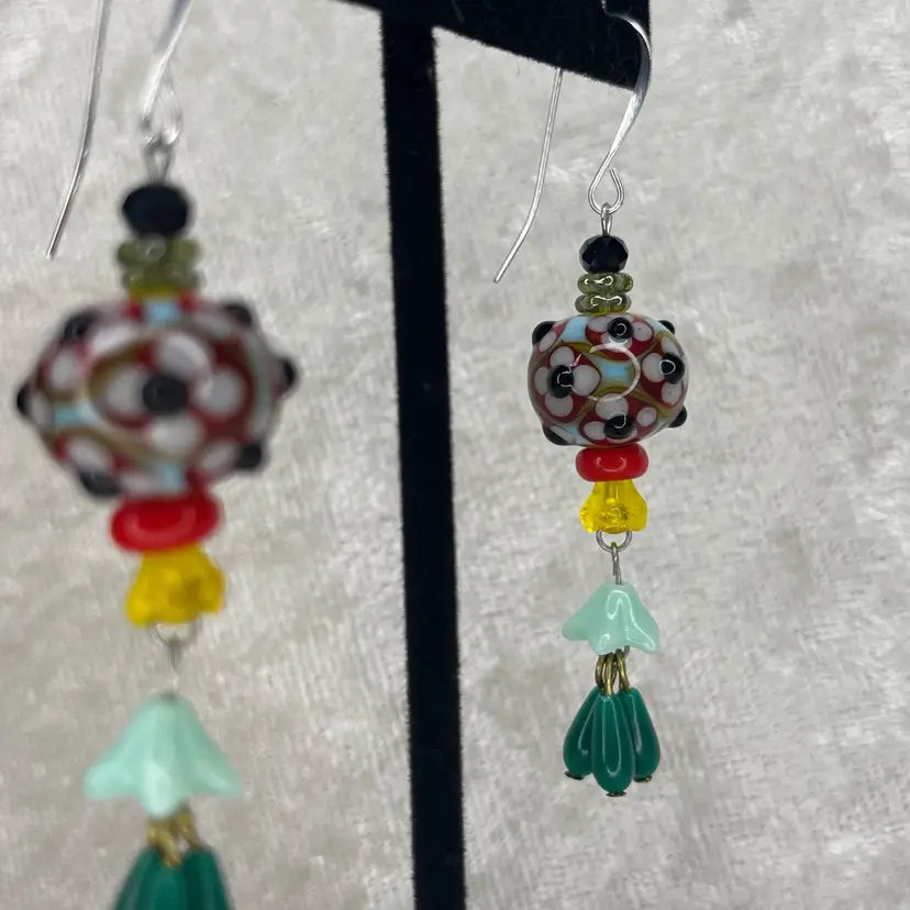 Materials: Vintage lampwork bead, upcycled vintage glass and plastic beads.
