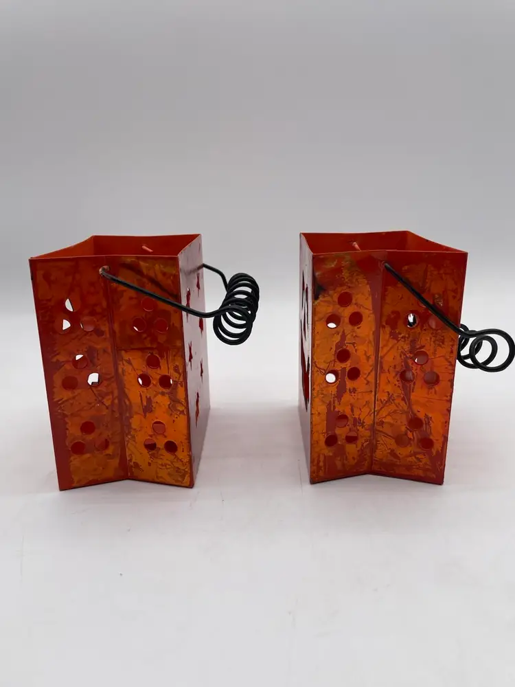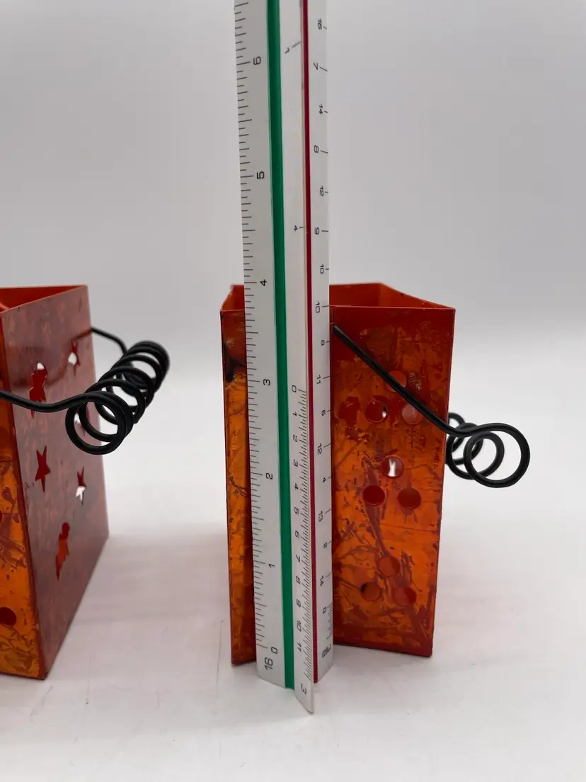 Very good condition. These are great little metal tea light holders that are just the right amount of Halloween for any display! They measure approximately 4 inches tall.