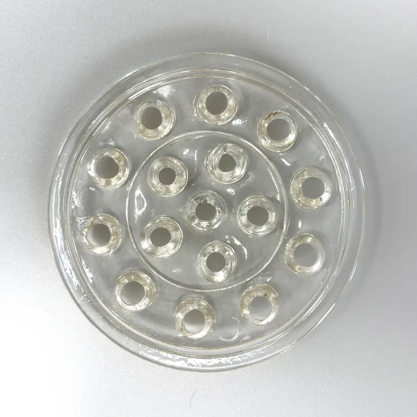 Perfect for vintage collectors, floral designers, or anyone who loves timeless glassware. This set of two clear pressed glass flower frogs, made in the 1930s–1950s, brings both function and vintage charm to your home. Use them to arrange fresh blooms, organize pens on your desk, or display marbles or alone as part of a glass collection.