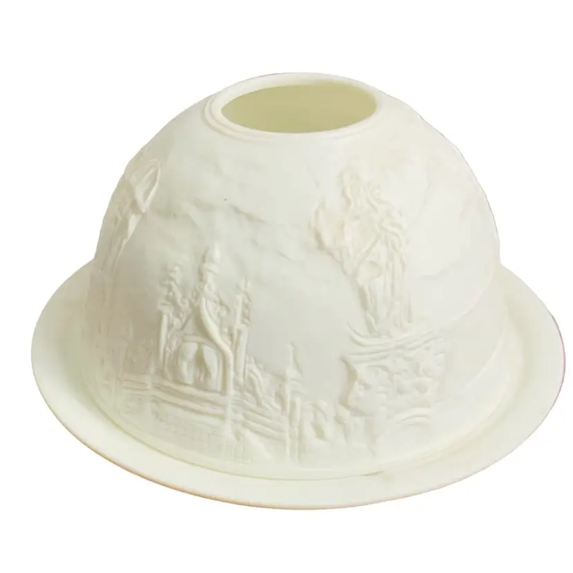 Gorgeous bisque porcelain Christmas fairy light. It great condition. The previous owner secured the dome with the base for sale with very strong tape. When I tried to take off the tape, it almost took off the makers sticker underneath. I, therefore left the tape over the sticker. Please see photo. The previous owner also used sharpie to put price on the under side of base. Other than that there appears to be no additional damage. No chips or cracks. It is approximately 3” tall and 4.75” in diameter. Really pretty