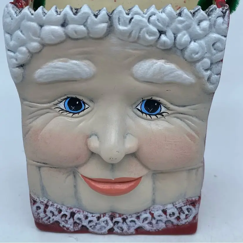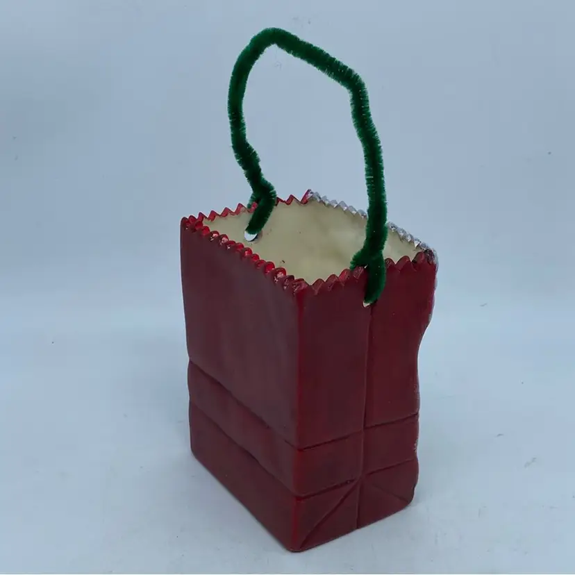 Add some festive vibes to your holiday decor with this charming set of vintage Christmas bag figures. The hand-painted pottery figures depicts Mrs. Claus, perfect for creating a cozy and cheerful atmosphere. The medium-sized figures are made of clay and feature a 3D design that adds depth and texture to your holiday display.