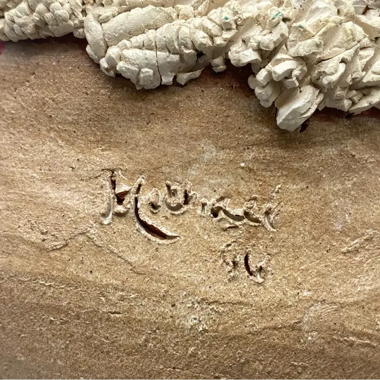 8”x6” no chips or cracks. Flea bite on rim. Folk art, characterized by its often naive and handcrafted aesthetic, has a long tradition across many cultures, typically created by self-taught artists. In contemporary times, artists like Johanna Parker have gained popularity for their distinctive holiday-themed creations, often incorporating whimsical and primitive elements that evoke a sense of nostalgia and charm. These pieces are frequently made from various materials, including ceramics, paper mache, and wood, and are highly sought after by collectors for their unique personality and festive appeal. The style often draws inspiration from traditional holiday figures and motifs, reinterpreted with a modern, artistic touch.