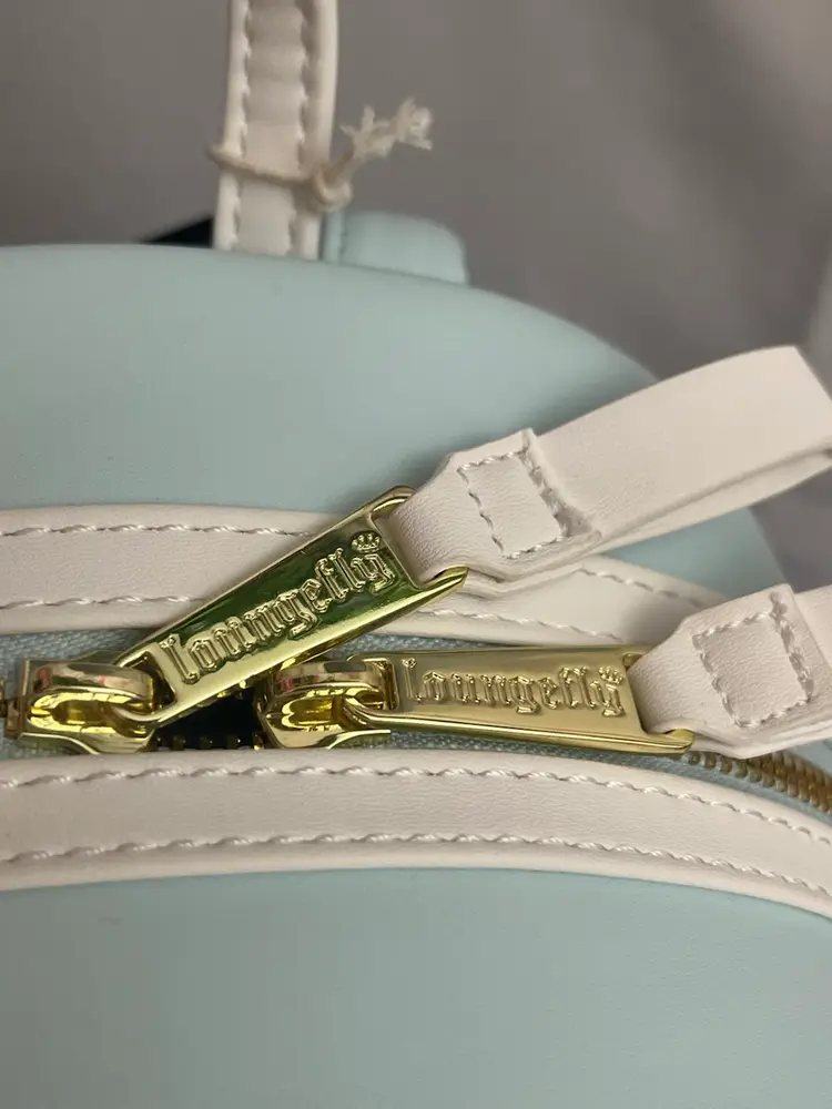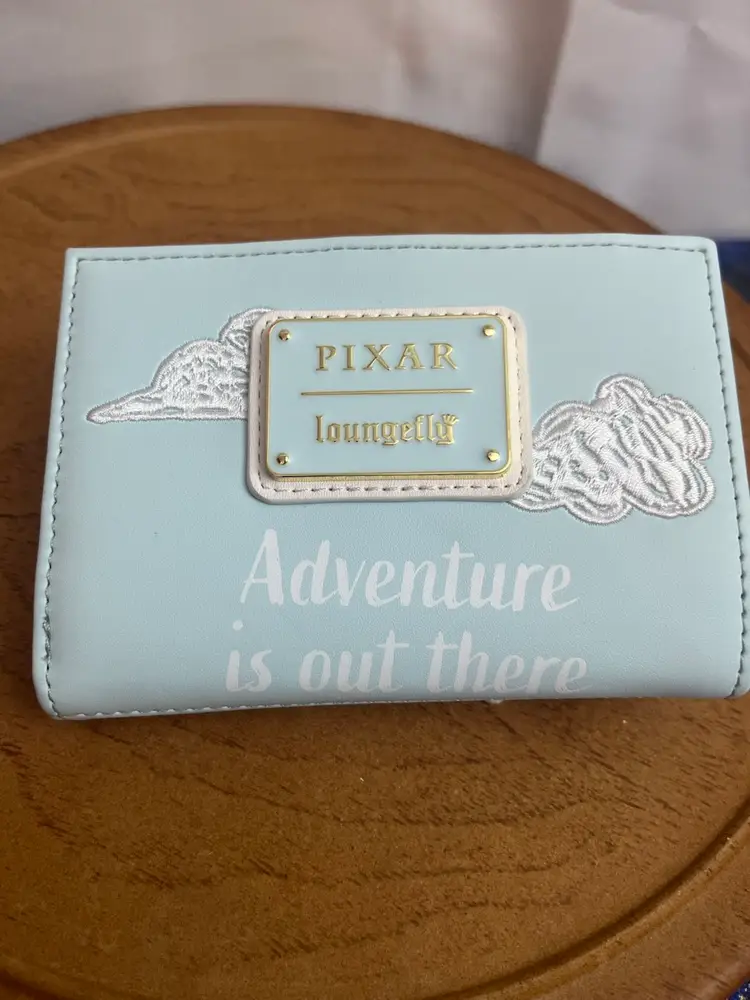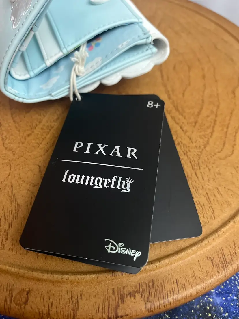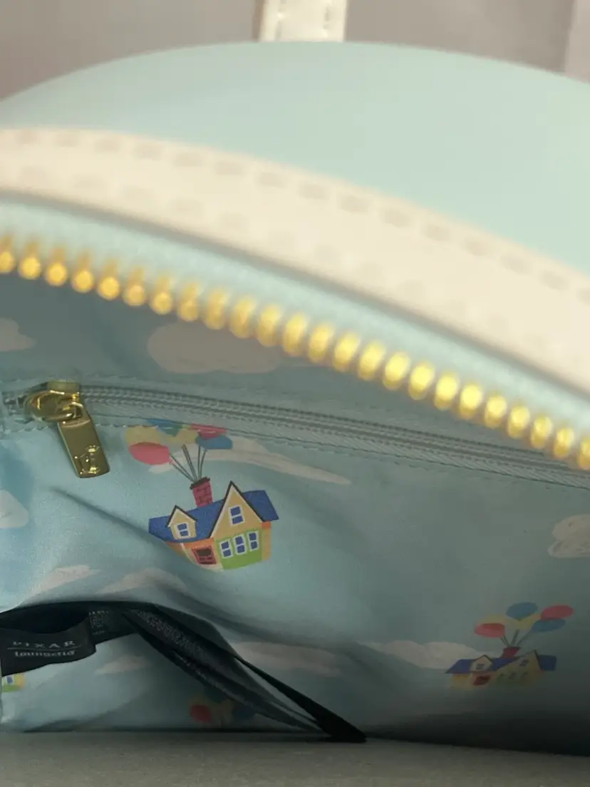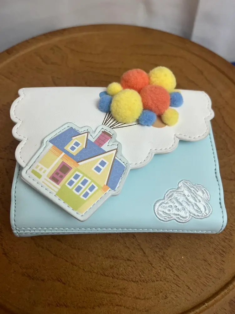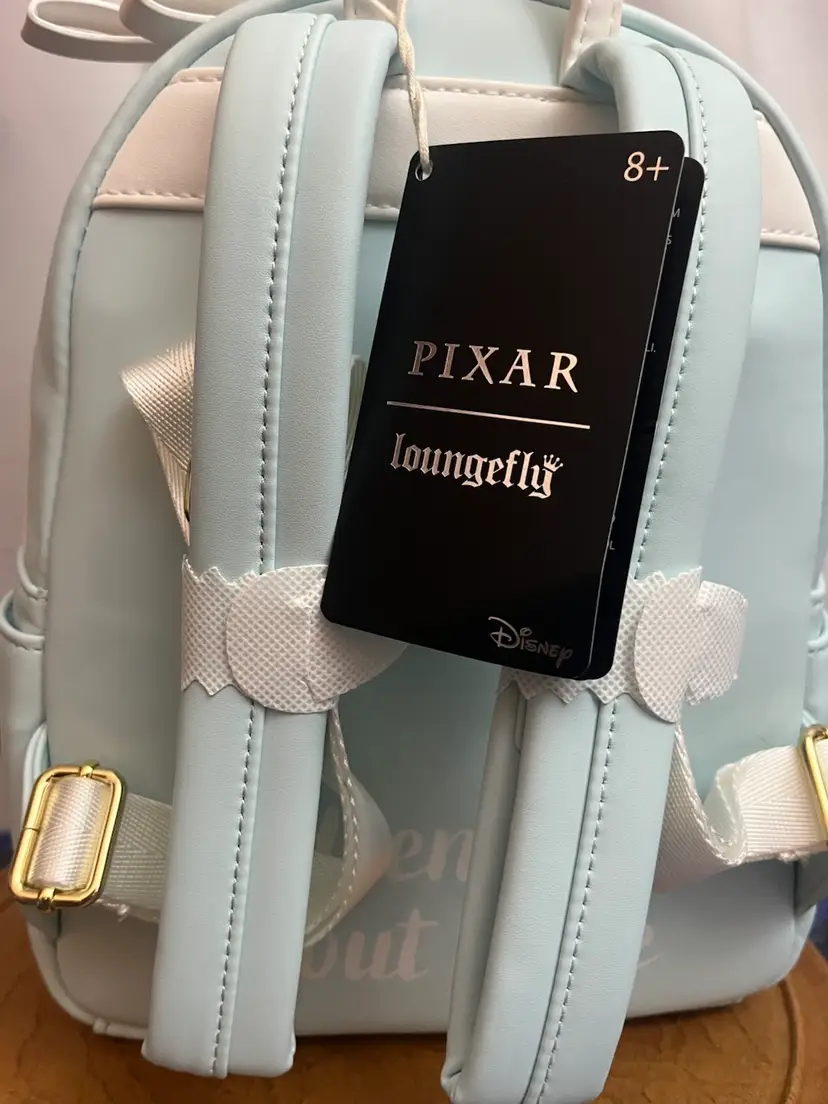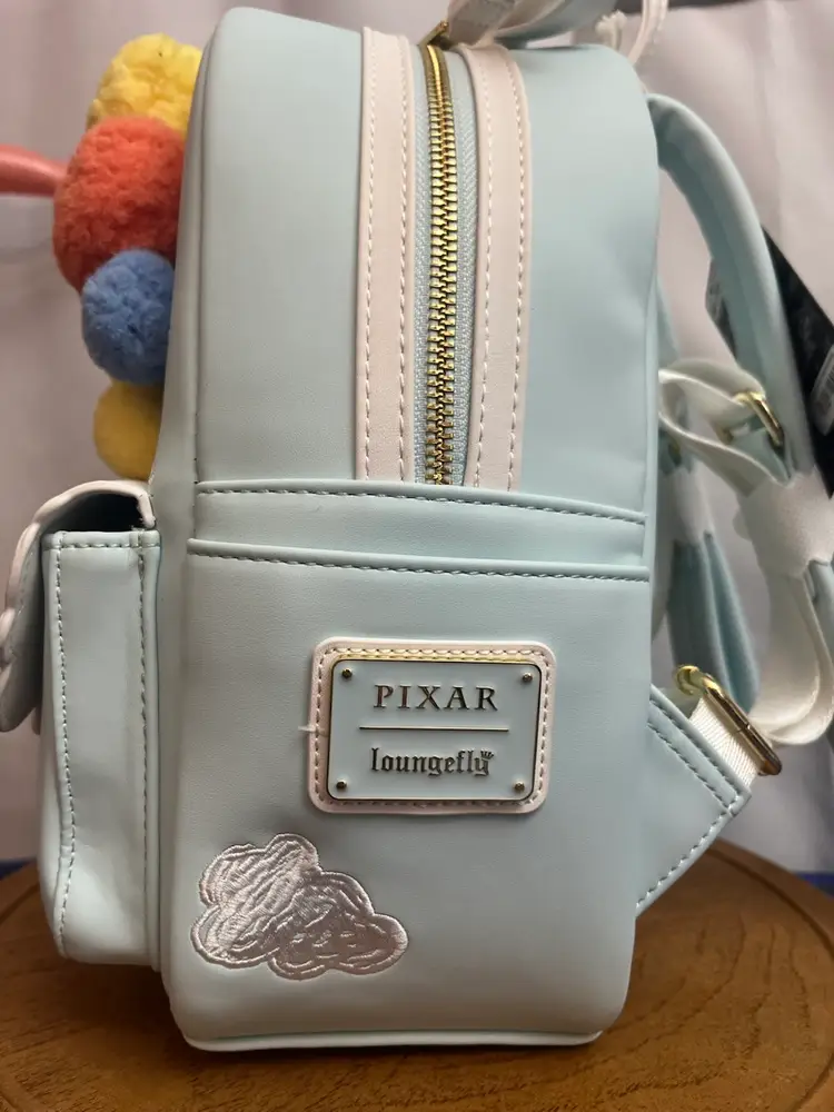 New with hard tag on both pieces Backpack with 3D Pom-poms and beautiful silvery-white clouds. Interior is fully lined with the Up theme. Wallet is new with hard tag. Light blue and matching the backpack. Interior also has the Up theme lining. Great collector pieces.