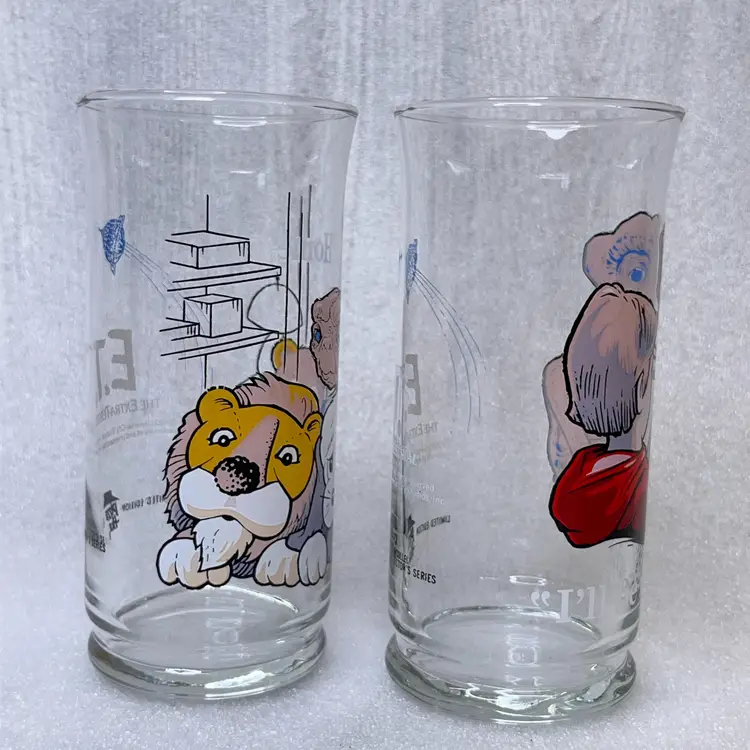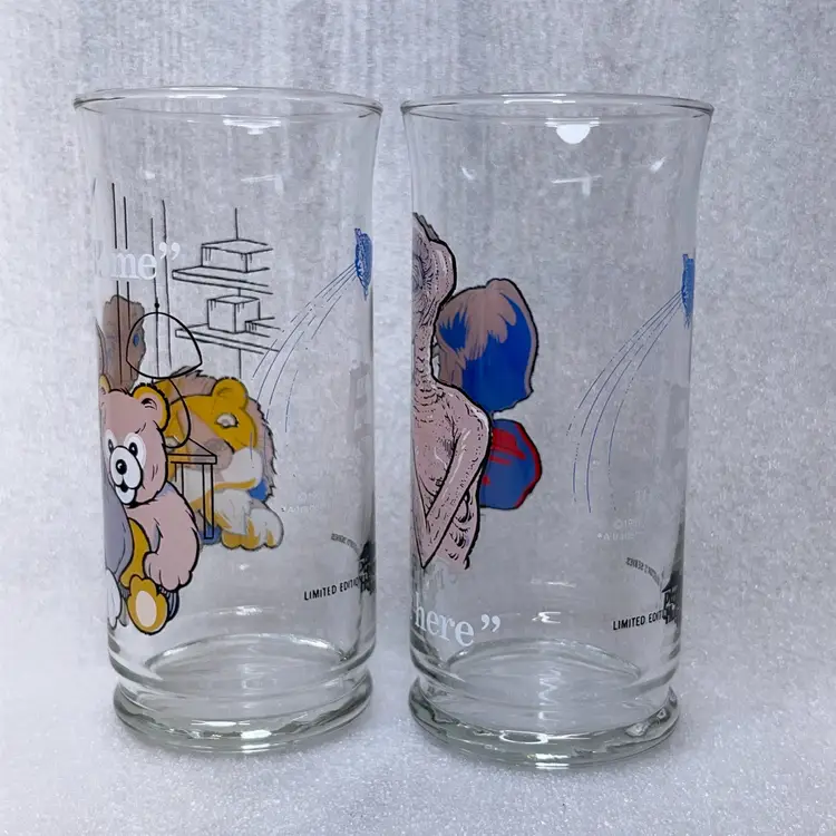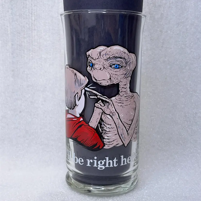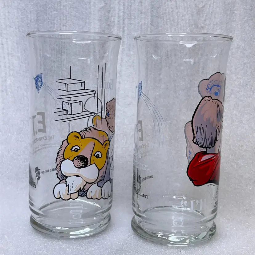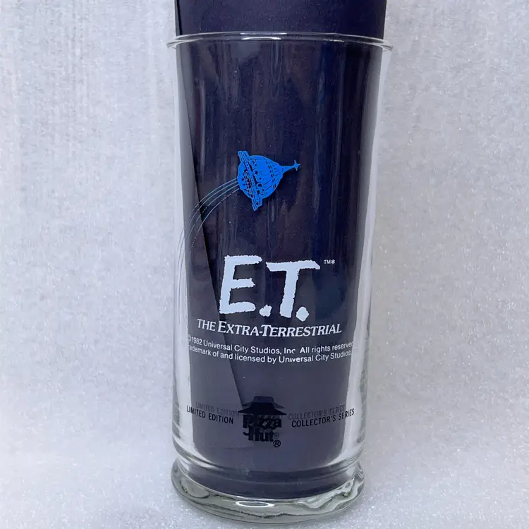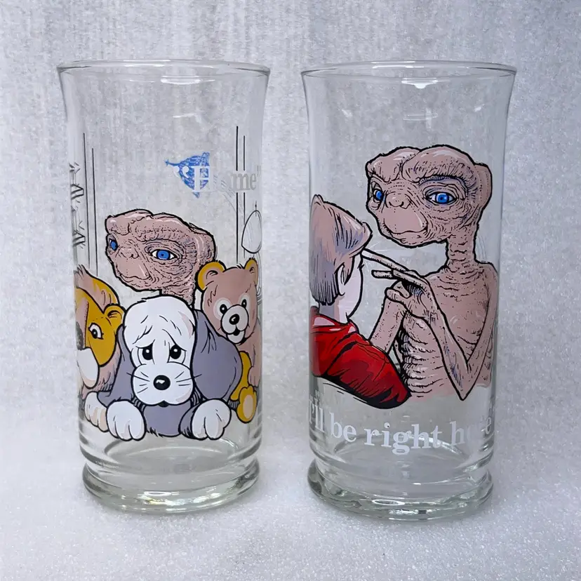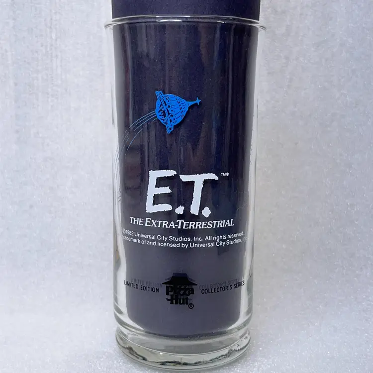 2x 1982 ET The Extra-Terrestrial Drinking Glass Cup Pizza Hut Limited Edition Collector's Series. This purchase includes the two cups shown in the photos. The condition is Used. The printing on these glass cups is still very bright. There is some minor wear from light use. See photos for details.
