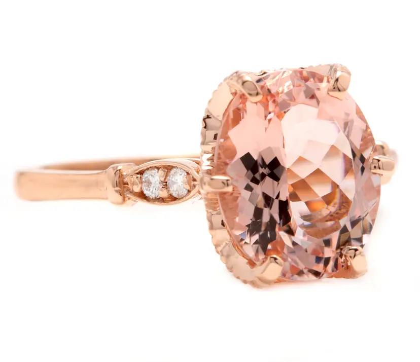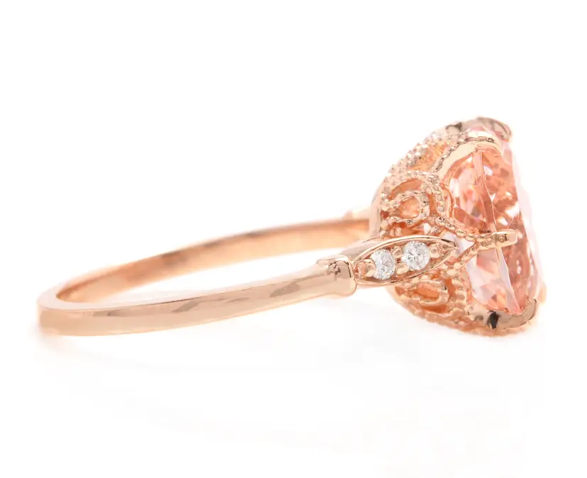 Total Carat Weight (TCW): 3.08 Type: Ring Main Stone Color: Pinkish Peach Brand: Unbranded Ring Size: 6.5 Main Stone Shape: Oval Main Stone Treatment: Heating Metal Purity: 14k Main Stone: Morganite Sizable: Yes Main Stone Creation: Natural Metal: Rose Gold