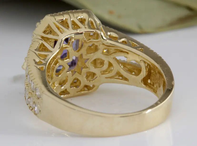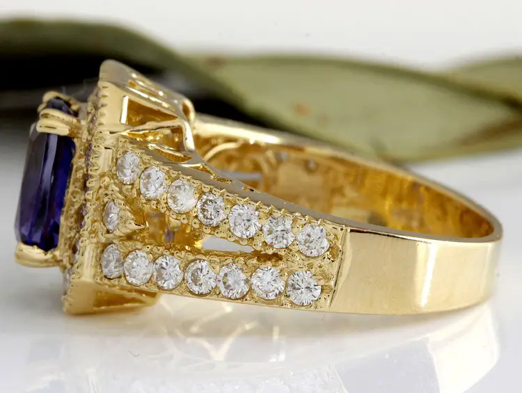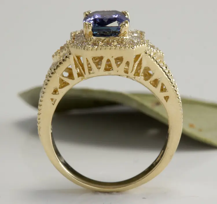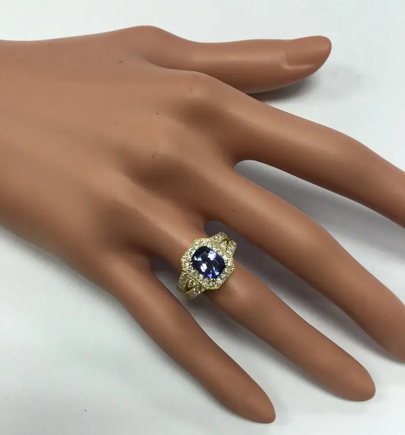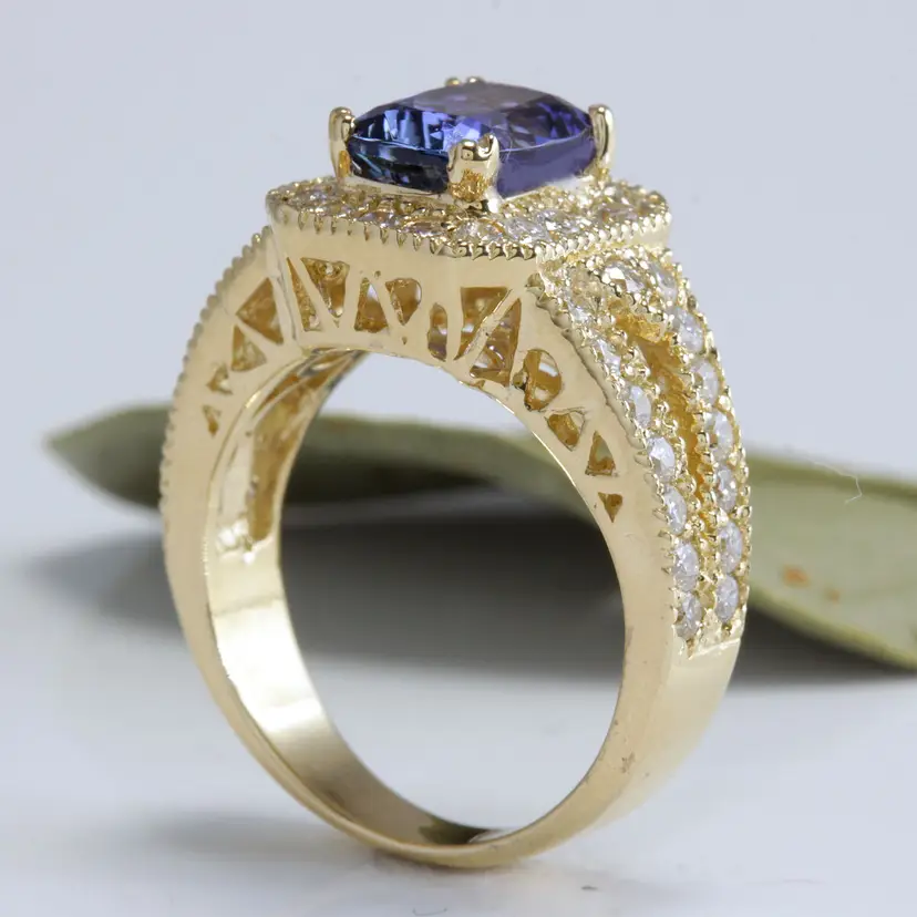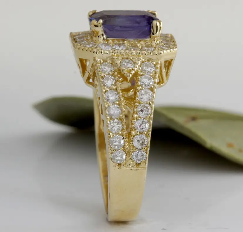 Total Carat Weight (TCW): 3.30 Type: Ring Main Stone Color: Bluish Violet Brand: Unbranded Ring Size: 6 Main Stone Shape: Cushion Main Stone Treatment: Heating Metal Purity: 18k Main Stone: Tanzanite Sizable: Yes Main Stone Creation: Natural Metal: Yellow Gold