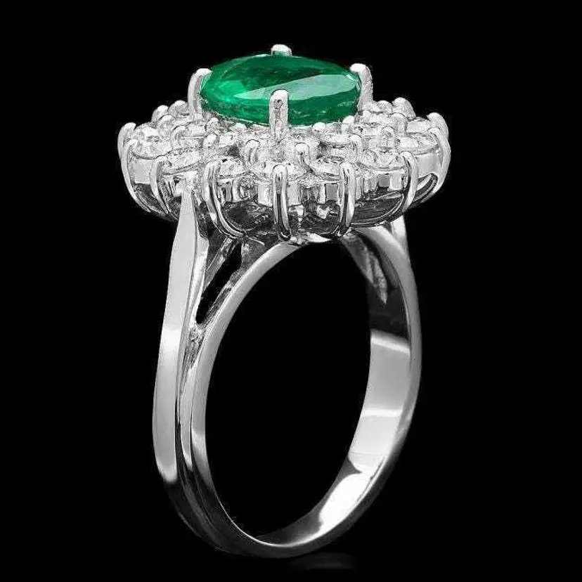 3.30Ct Natural Emerald & Diamond 14K Solid White Gold Ring