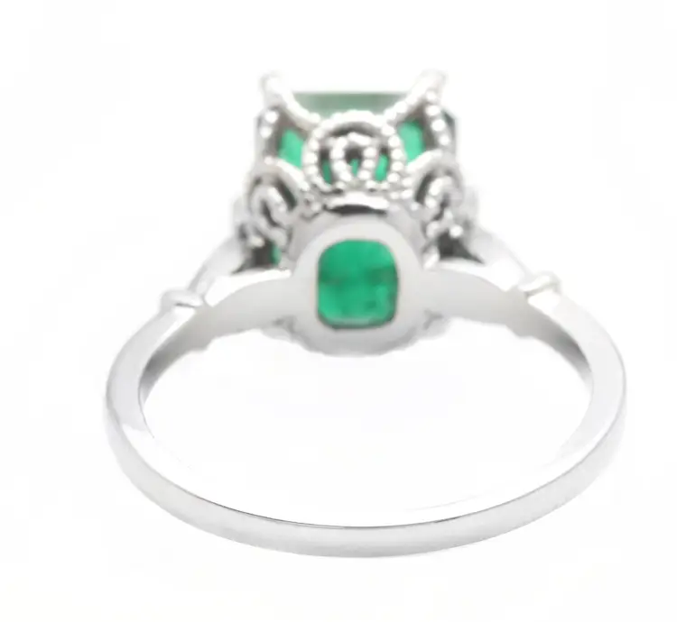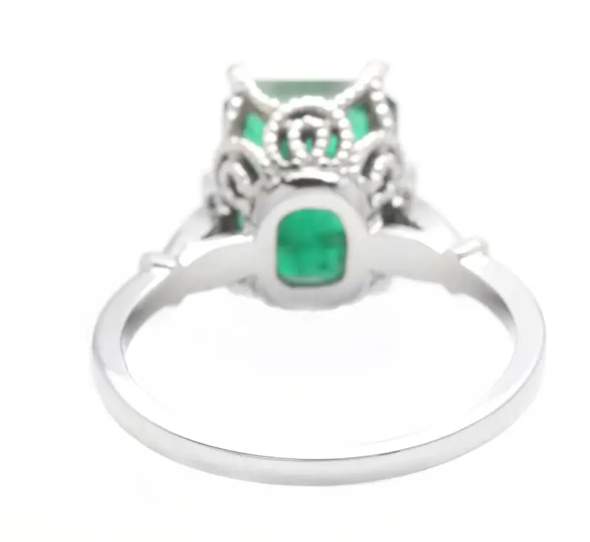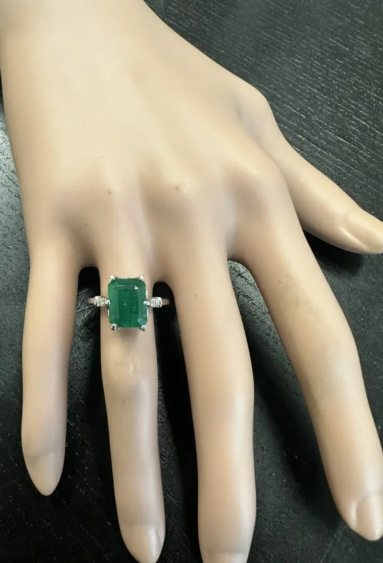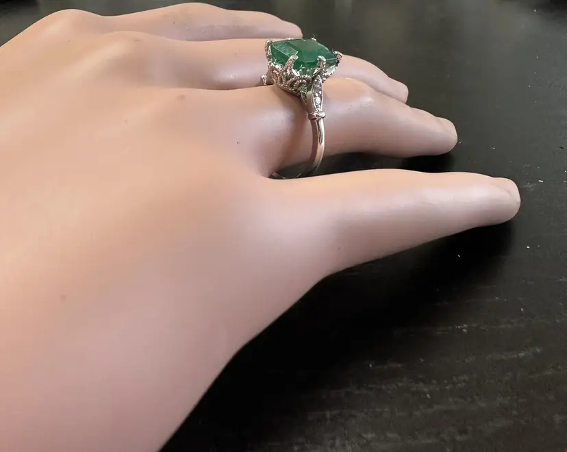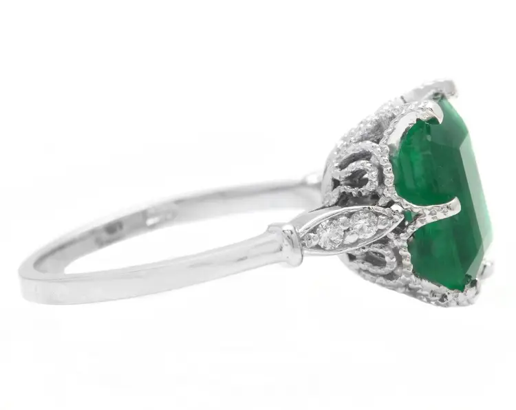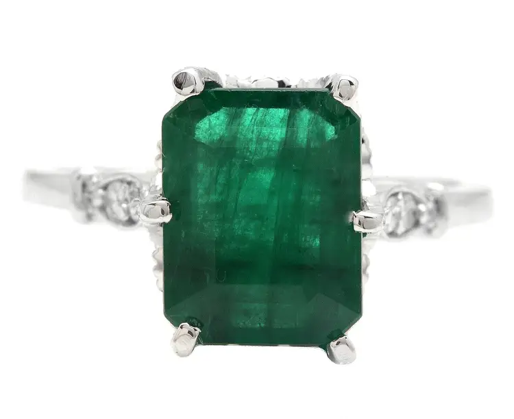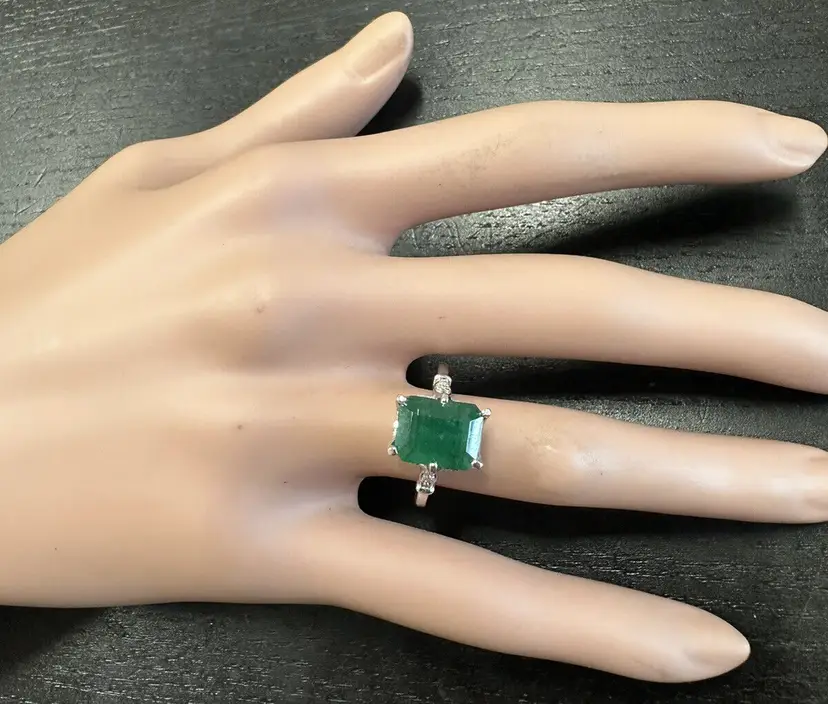 Main Stone Creation: Natural Sizable: Yes Main Stone Color: Green Metal: White Gold Secondary Stone: Diamond Main Stone: Emerald Brand: Unbranded Ring Size: 7 Main Stone Treatment: Oiling Type: Ring Metal Purity: 14k Main Stone Shape: Emerald Theme: Nature Total Carat Weight (TCW): 3.38