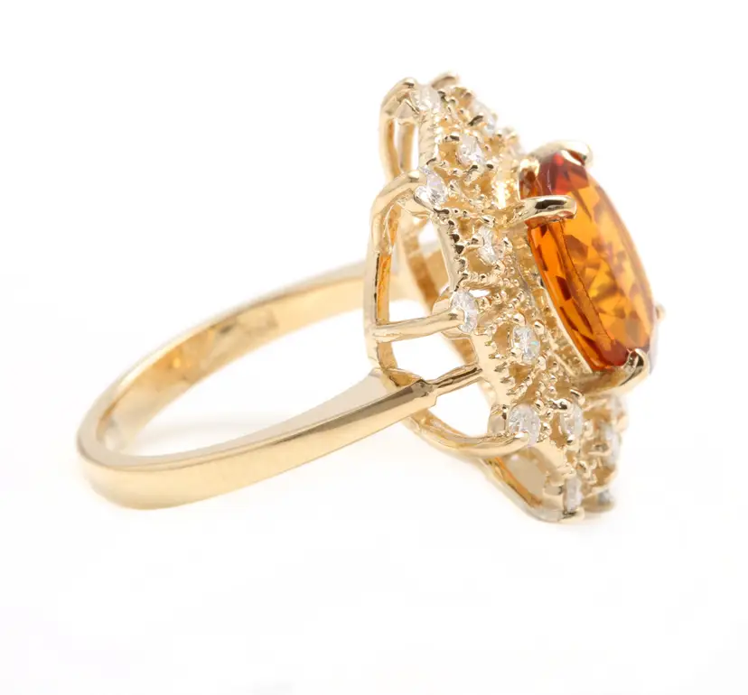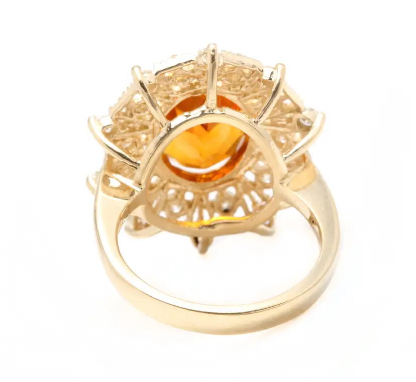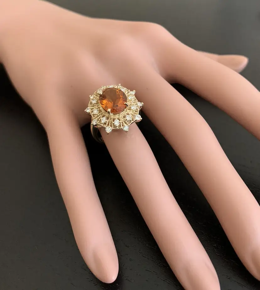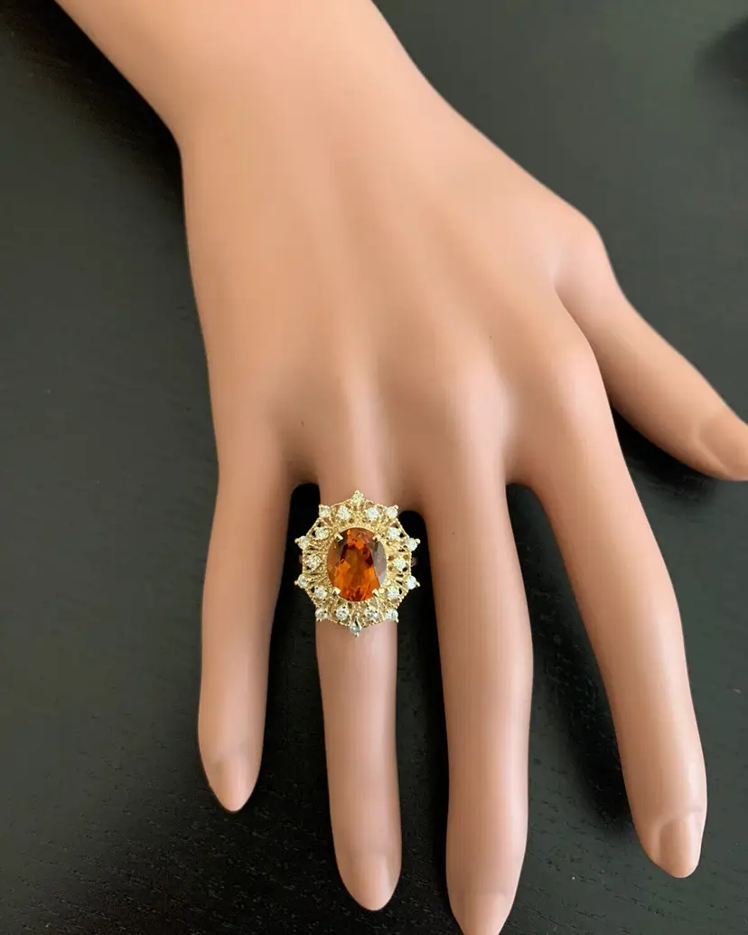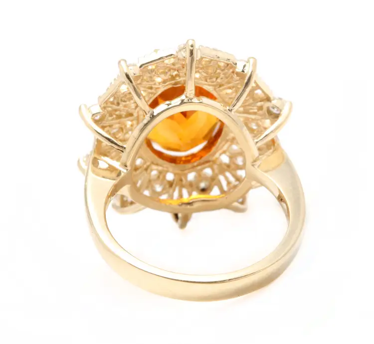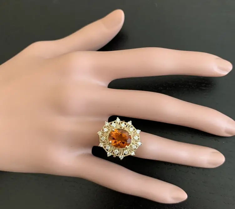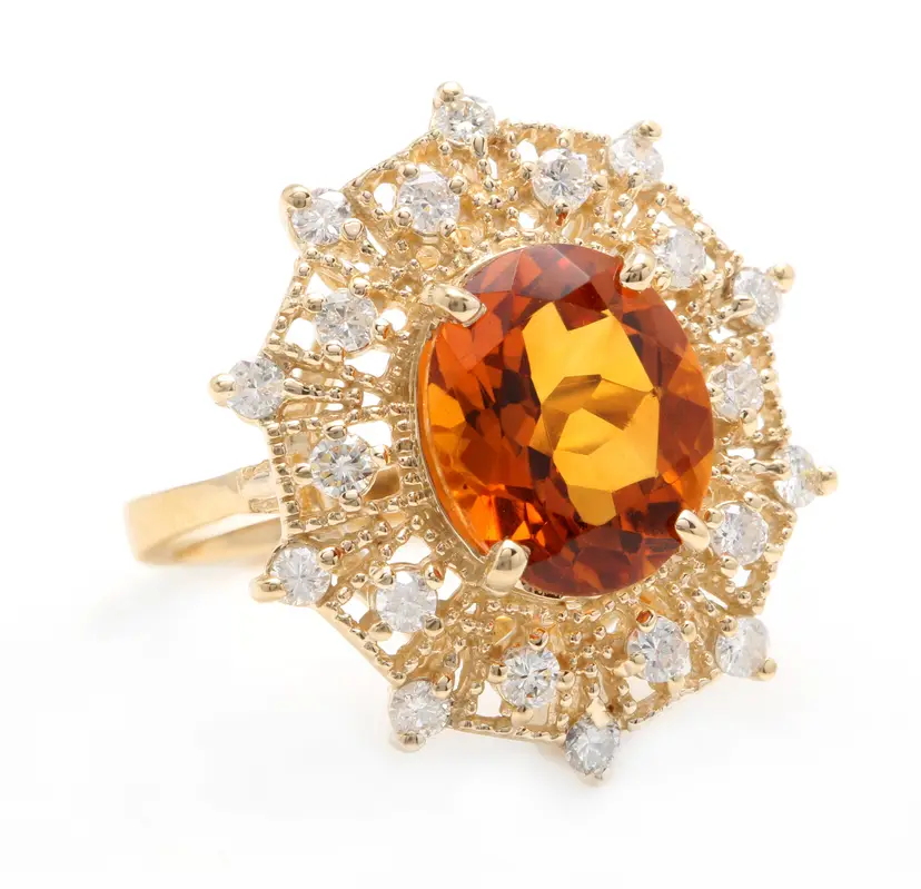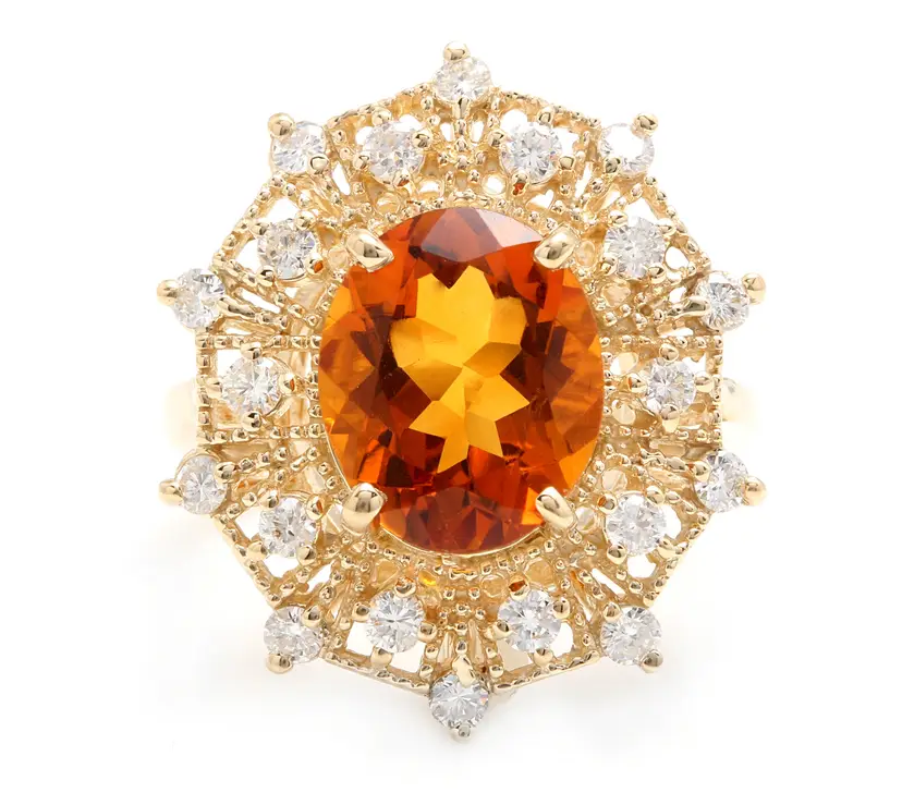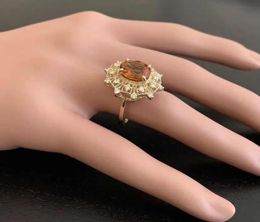 Ring Size: 6.5 Main Stone Creation: Natural Metal Purity: 14k Style: With Diamonds & Gemstones Main Stone Color: Orange Metal: Yellow Gold Secondary Stone: Madeira Citrine Main Stone: Madeira Citrine Total Carat Weight (TCW): 3.46 Sizable: Yes Main Stone Shape: Oval Brand: Unbranded Type: Ring