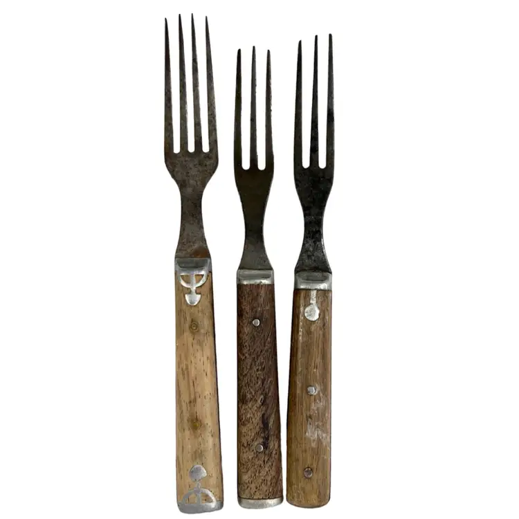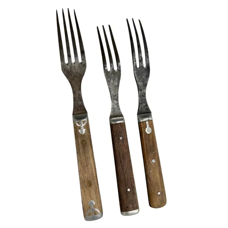 Primitive wooden handled forks Two have 3-tines One has 4-tines Late 1800s U.S. Civil War era Not marked