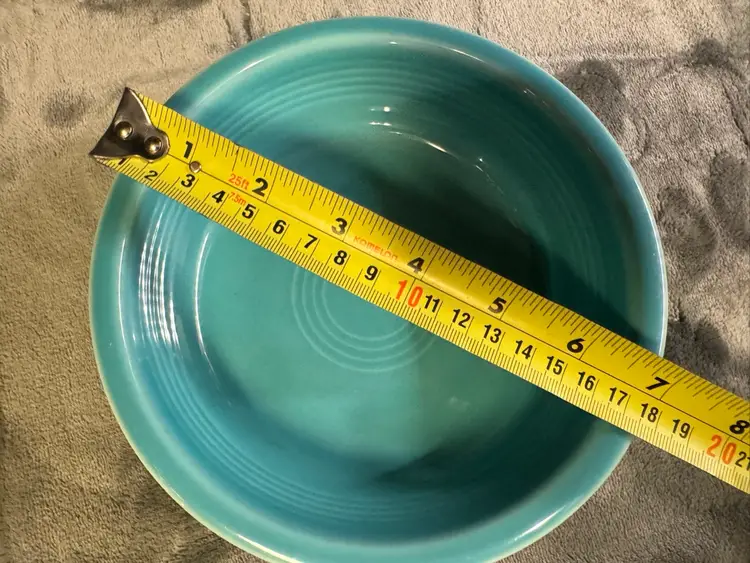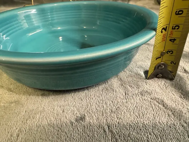3 available. Please see my other listings for more matching items. The product is a vintage Fiestaware large 7" x 2" cereal soup bowl in turquoise blue/green. Made of ceramic with a glossy finish, these round bowls are dishwasher safe and feature an impressed backstamp. Produced in the United States using pottery techniques, these original Fiesta bowls are perfect for all occasions and add a touch of retro charm to any dining table. The vibrant colors and classic design make them a stylish and functional addition to your tableware collection. Excellent condition. No chips, cracks or crazing. Some very slight utensil marks consistent with minimal/limited use (see photos).