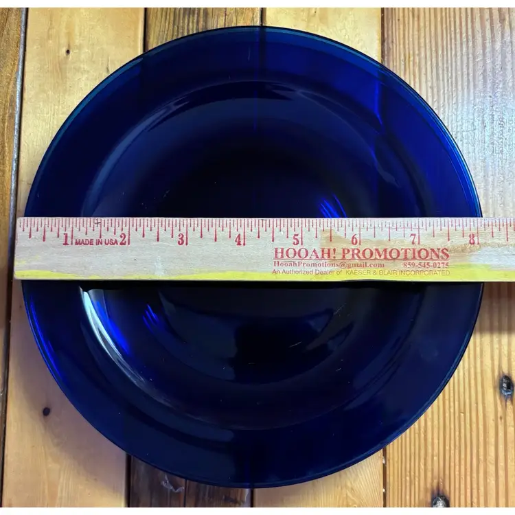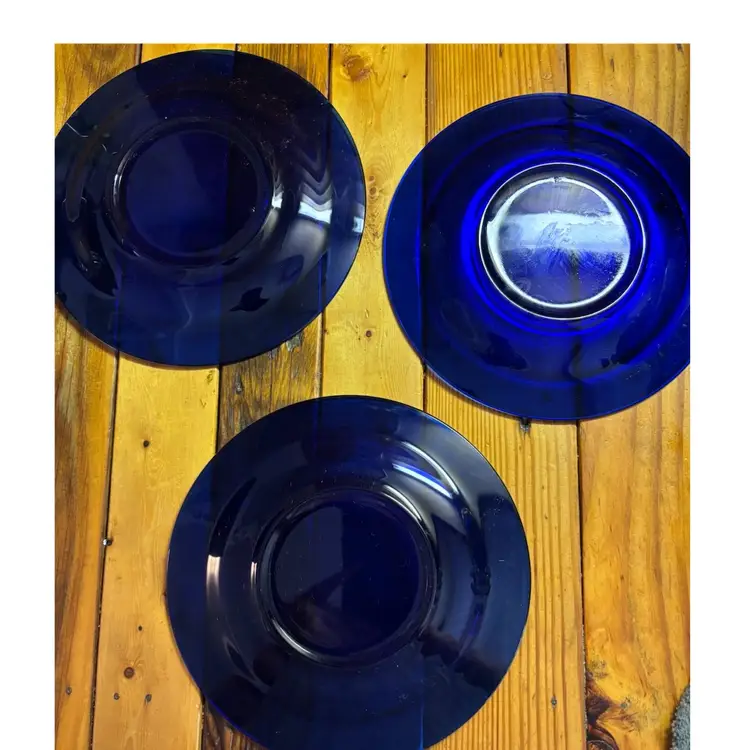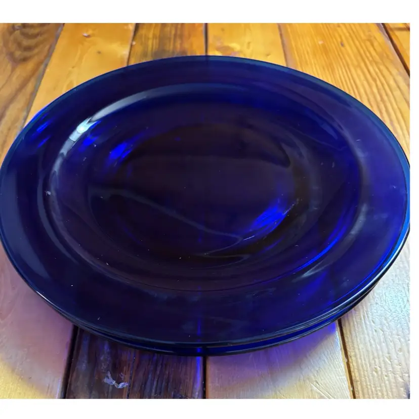 Approx. 8.5” diameter Cobalt Blue Glass Salad/Dessert Plate Not marked Without a pattern or design they can be mixed with other cobalt blue glass perfectly! No chips or cracks!