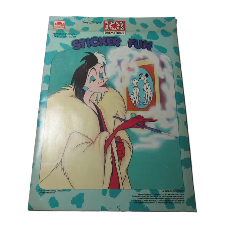 Vintage New 1991 Disney 101 Dalmatians Golden Sticker Fun Book-ISBN 0-307-30026-9-Stored New-Precut Stickers. Lick, stick, color