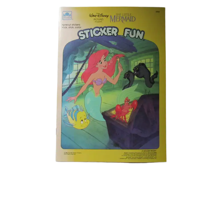Vintage 1989 Disney The Little Mermaid Golden Sticker Fun Book-ISBN 0-307-02282-x-Stored New-Precut Stickers. Lick, stick, color