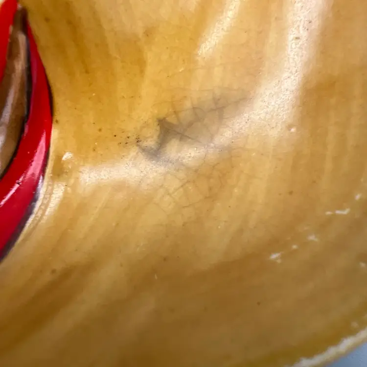 No chips or cracks but one has a spot in the middle that has crazing and some of the paint has worn off in areas. Please see all photos.