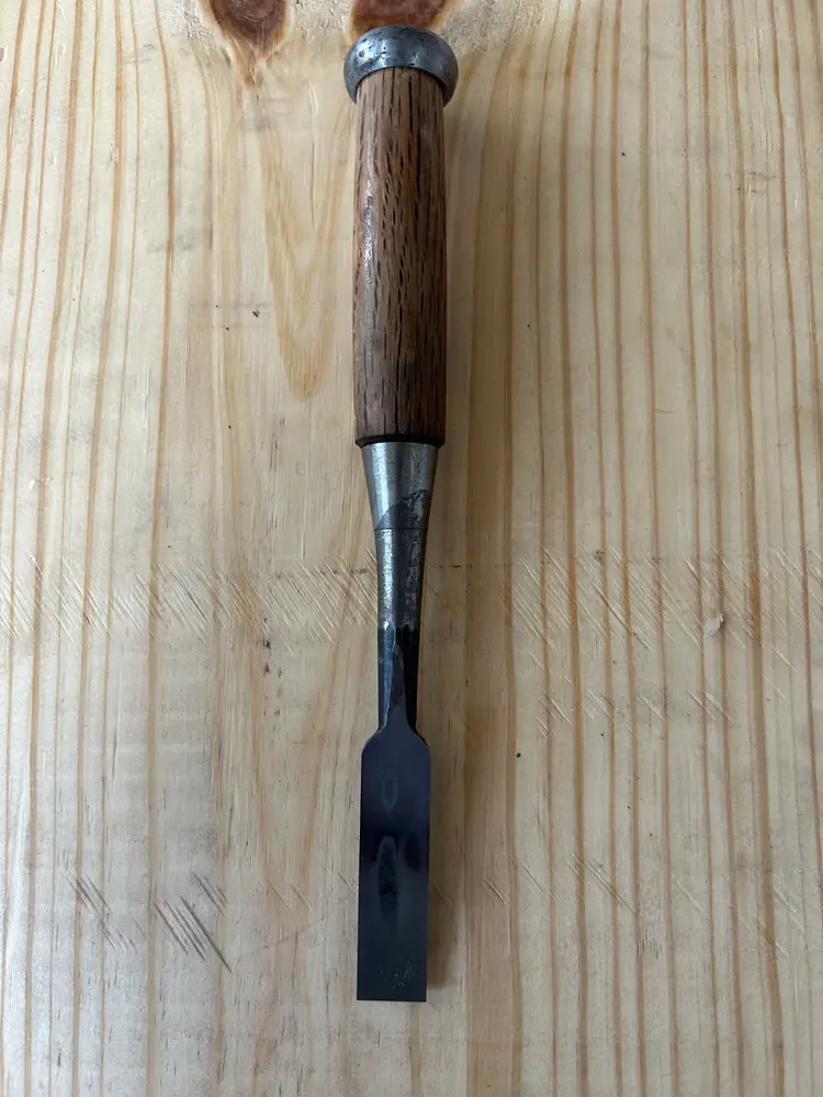 I purchased these chisels used and do not know anything about their history or manufacturer. However, I inclueded pictures of the top of the chisels where the stampings are visible.