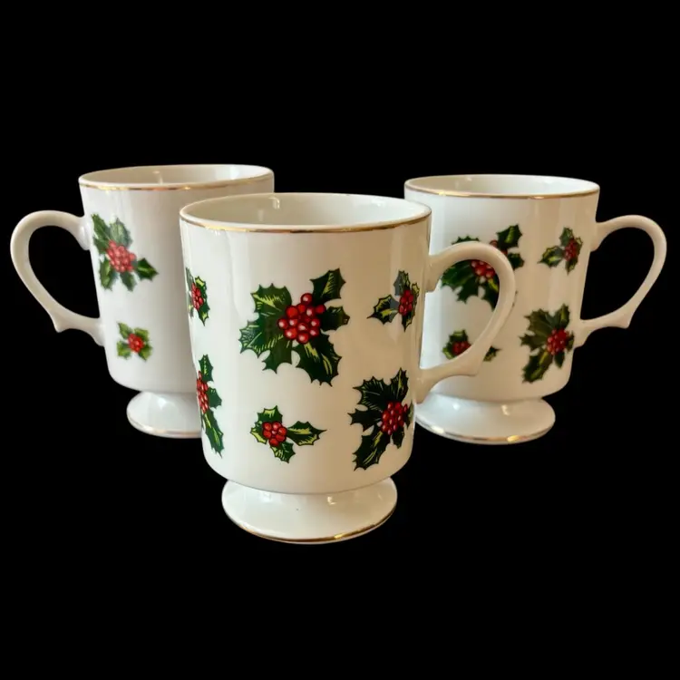Vintage Lefton China Christmas Holly Berry Footed Coffee Cup