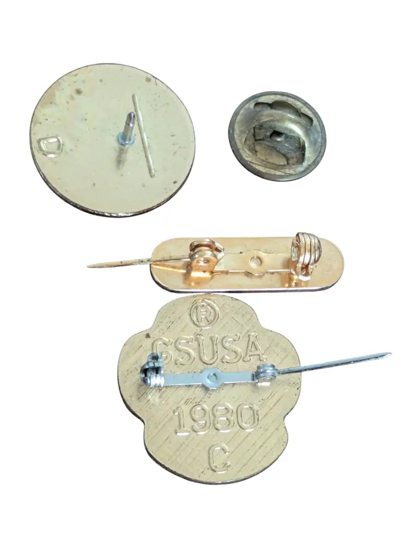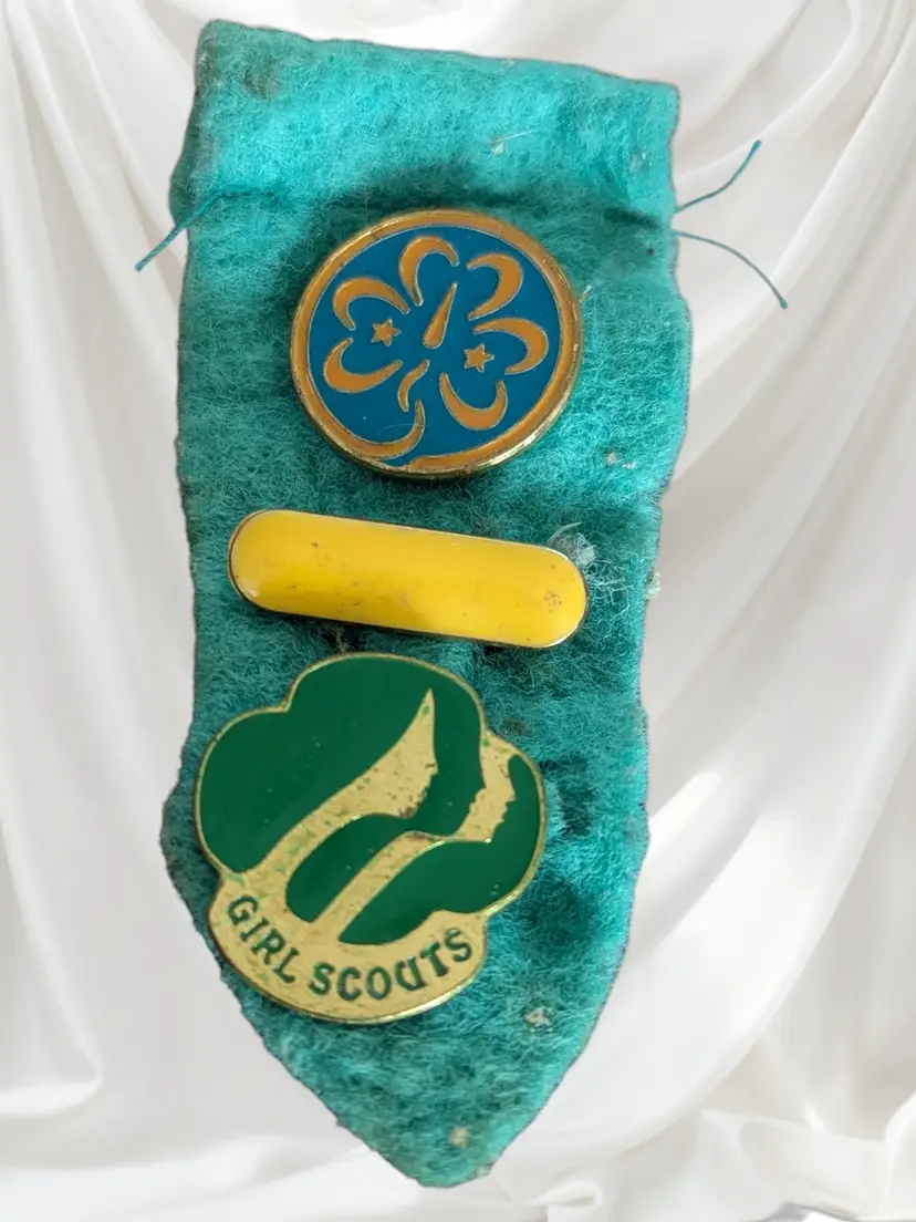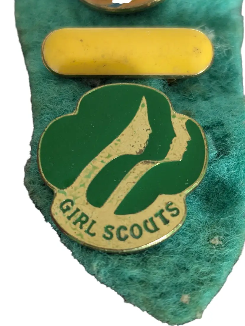This is a lot of 3 Girl Scout pins. They are all new but vintage. These are a great addition for a pin or Girl Scout item collector. The felt holder is pretty rough but still adequate. dwr2-020126