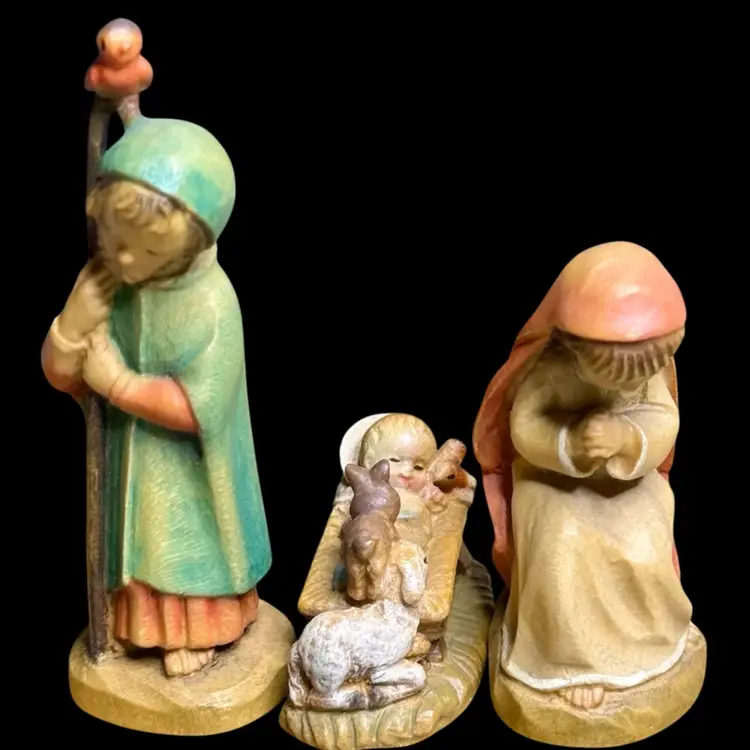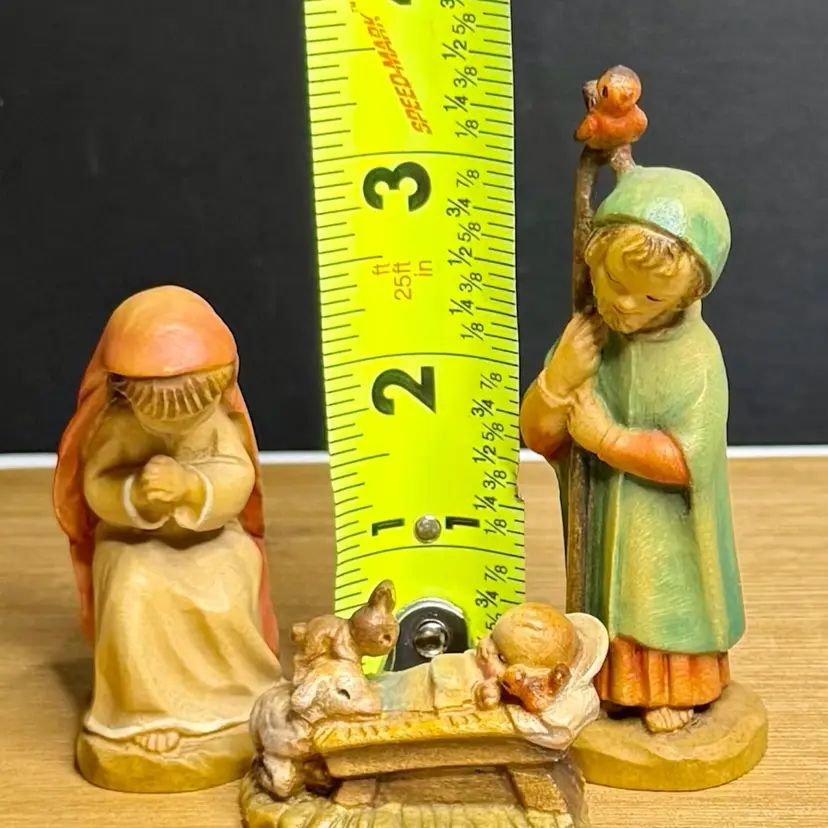 Anri Ferrandiz Holy Family Jesus, Mary & Joesph 3 Piece wood carved Nativity Set hand painted two are signed, baby Jesus has a label. Condition: No condition issues noted. Measurements are approximate: Joesph: 3-1/2” T x 1” L x 1” W Mary: 2-1/2” T x 1-1/4” L x 1”W Jesus: 1” T x 1/2” L x 1” W Please see pictures for condition and measurements as they are part of the description. S1-350 Thank you for looking!