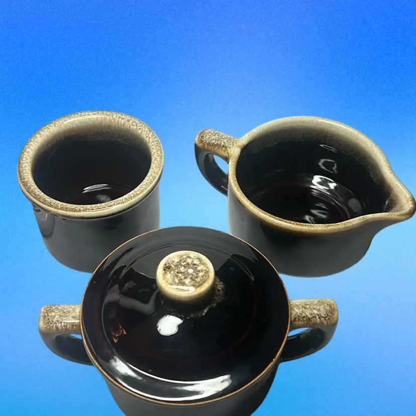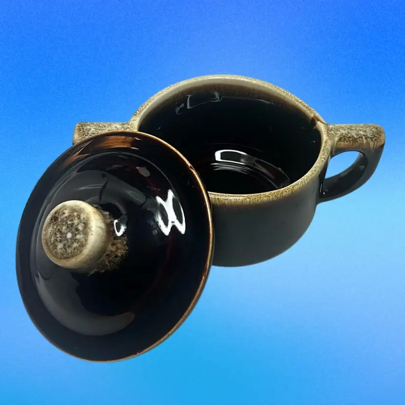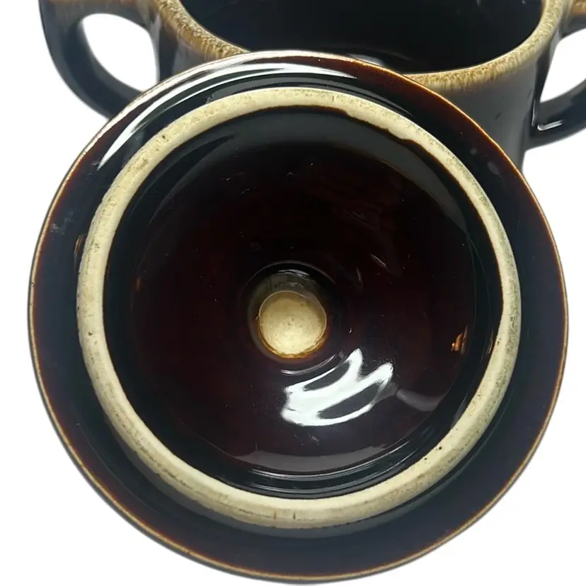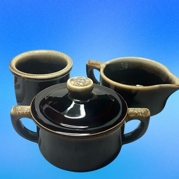 1.covered sugar dish with side handles and lid - no damage - measures 4” tall & 6” wide 2. Matching creamer - 2” tall & 5.5” from handle to spout. No damage 3. Open cheese crock - no damage and measures 3 3/8” wide & 2.5” tall