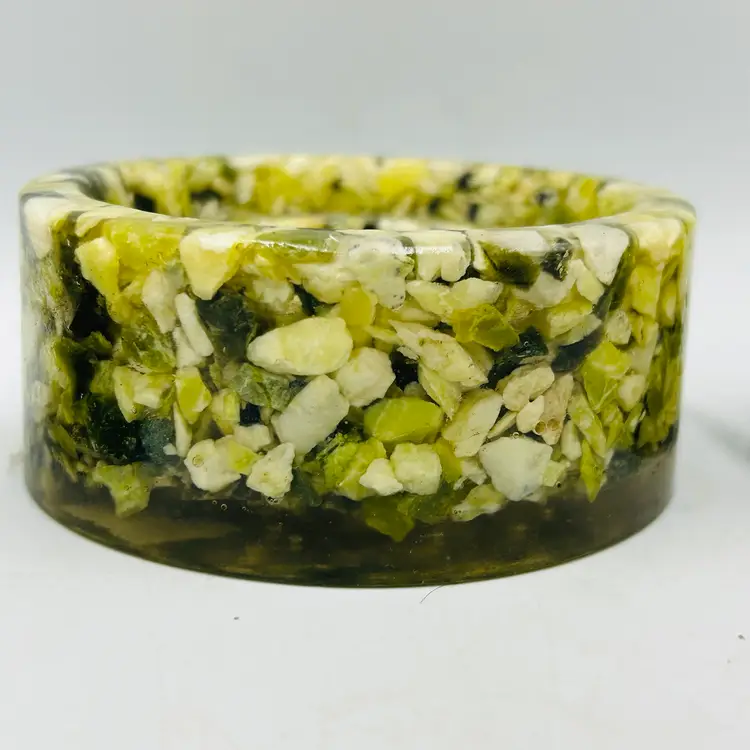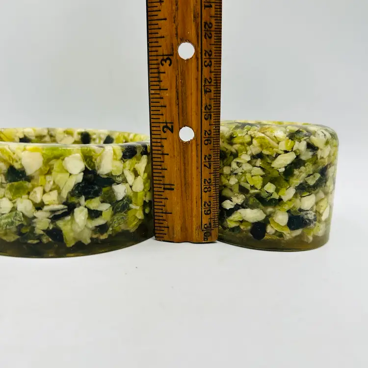 No major damage, some roughness on bottom edge which is normal. One does have a small divot out on the bottom but it is disguised by pattern and location.