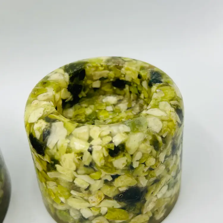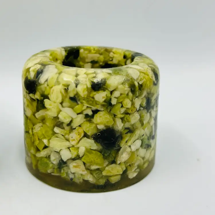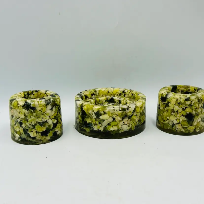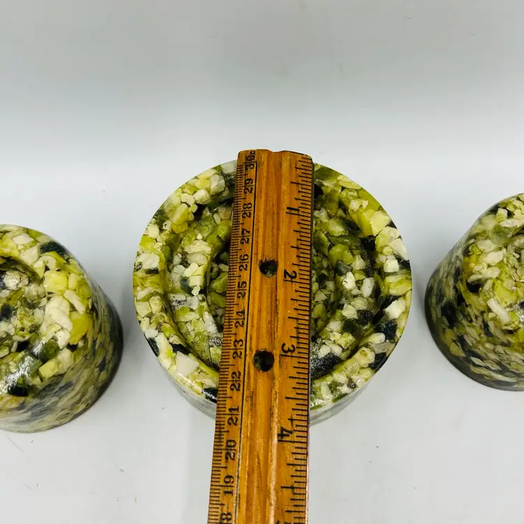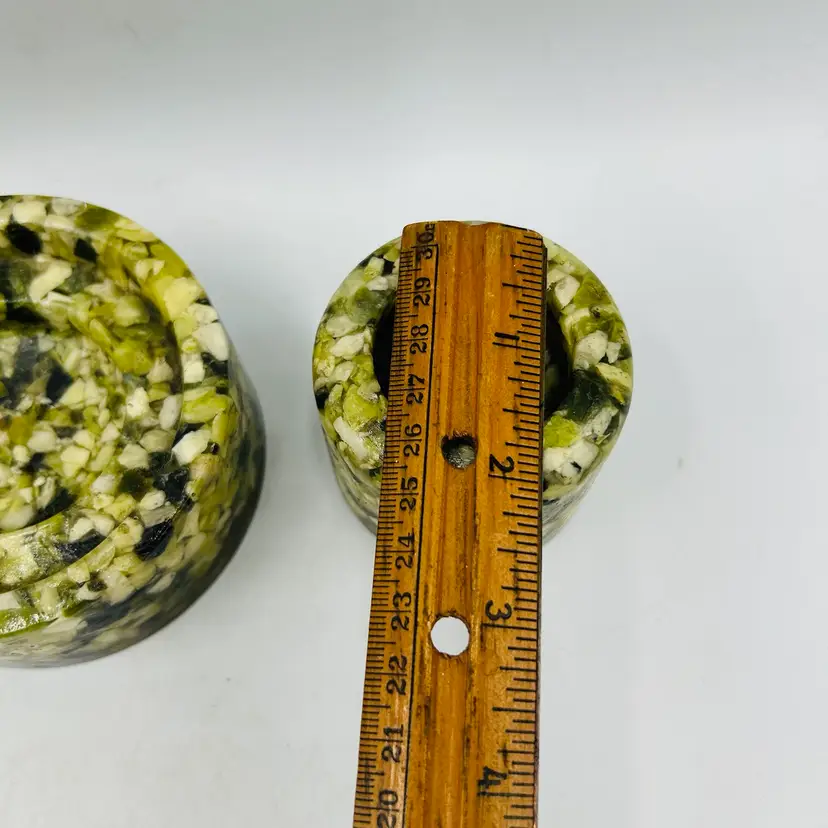 The wider by squat candle holder measures approximately 1 5/8” by 3.75” . With the interior candle area measuring approximately 3 1/8” again candle should be just slightly smaller