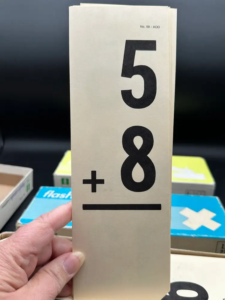 The cards feature addition, subtraction, and multiplication problems, making them a great educational tool for children. They are in excellent condition and would make a great addition to any vintage school supply collection. Don't miss out on the chance to own these unique pieces of history!