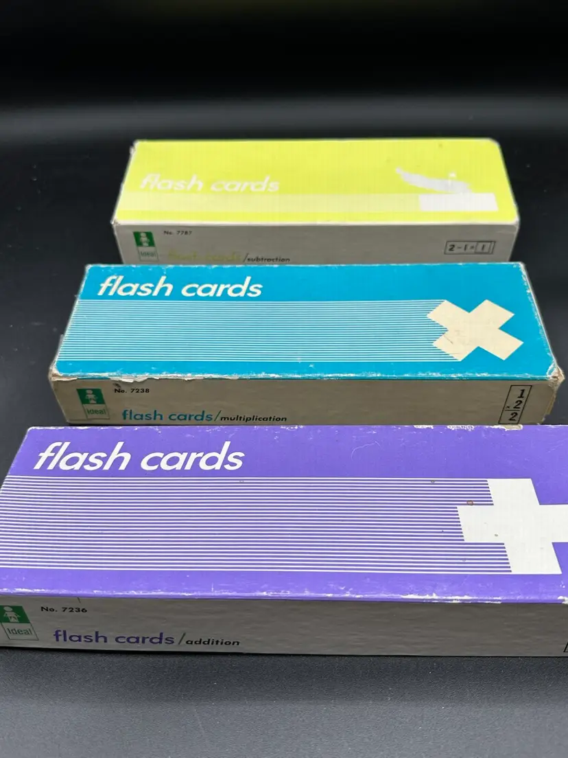 Retro set of all 3 ... rare find .This set of three rare vintage boxes of one multiplication cards, one addition cards, & one subtraction cards .. from IDEAL School Supply Co. is a must-have for any collector of historical memorabilia related to teaching and education. See my other vintage, retro & antique listings.more old teaching materials sold in lots . Thank you